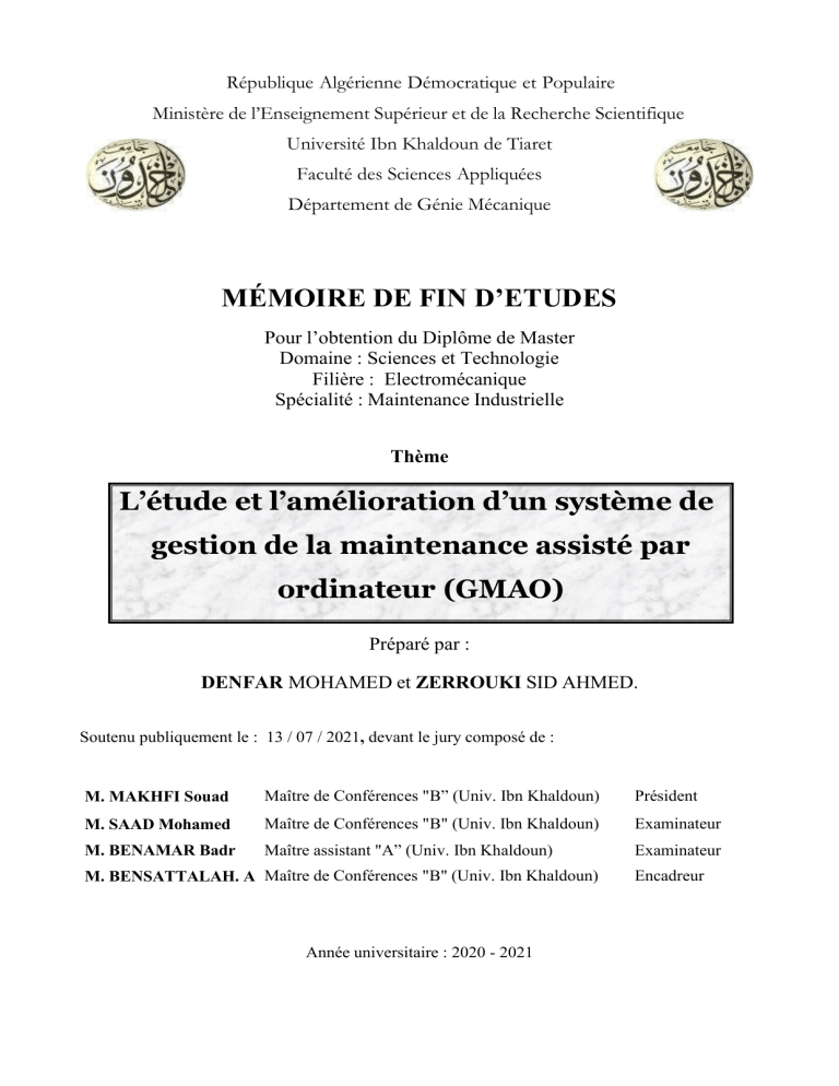 1 CHAPITRE 1 : GMAO ..................................................................................................................... 12