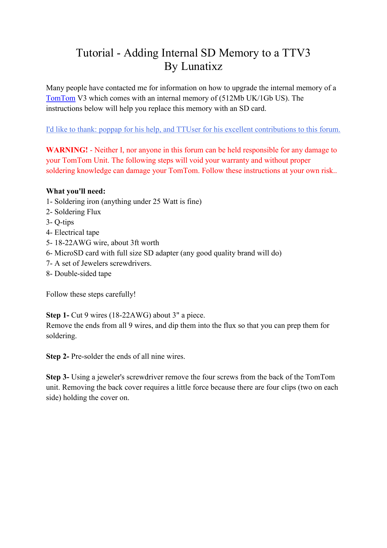 soldering knowledge can damage your TomTom. Follow these instructions at your own risk..