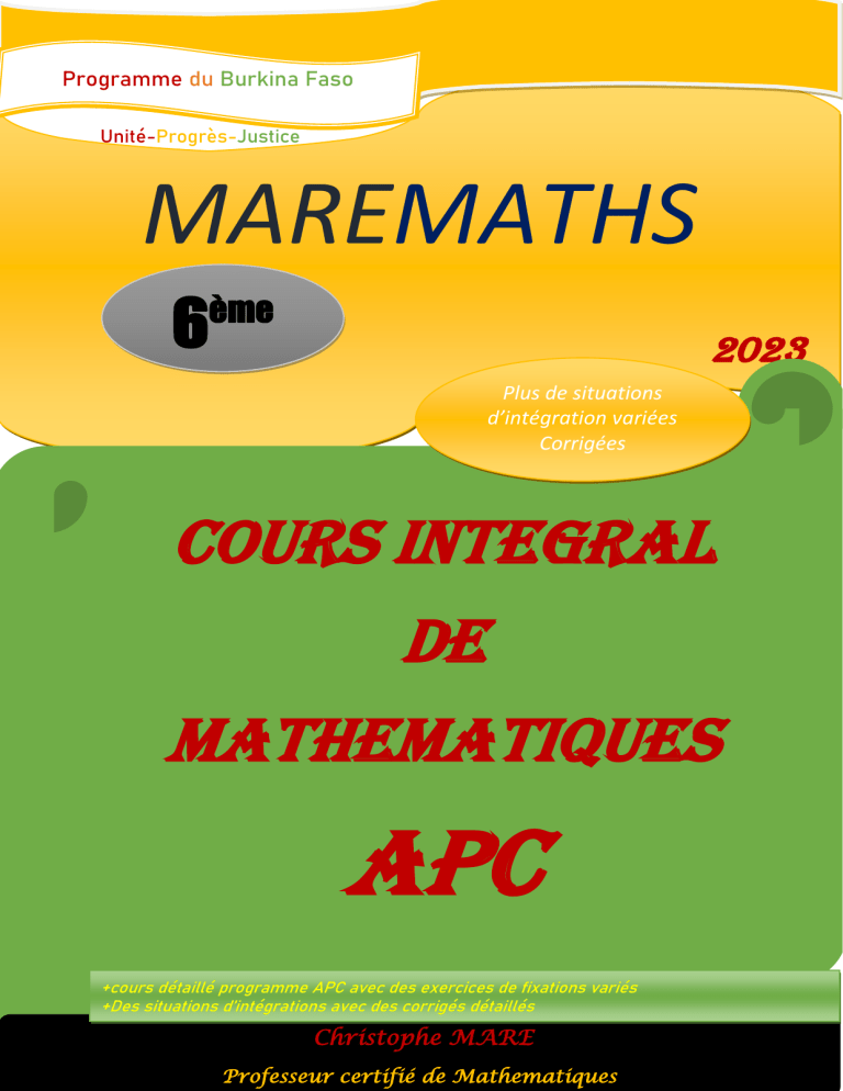 MAREMATHS APC COURS DE MATHEMATIQUES 6ème
