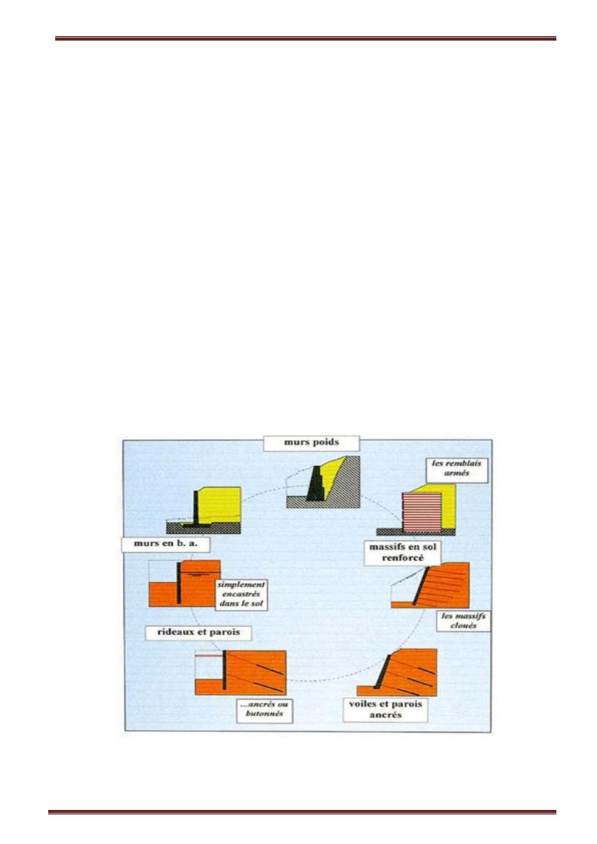 Les Ouvrages de soutènement peuvent être classés en plusieurs catégories ; Ils se distinguent
