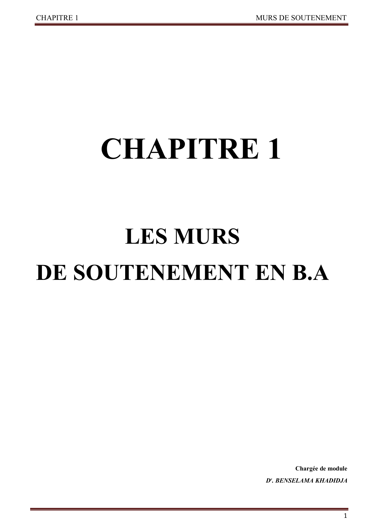 CHAPITRE 1 MURS DE SOUTENEMENT