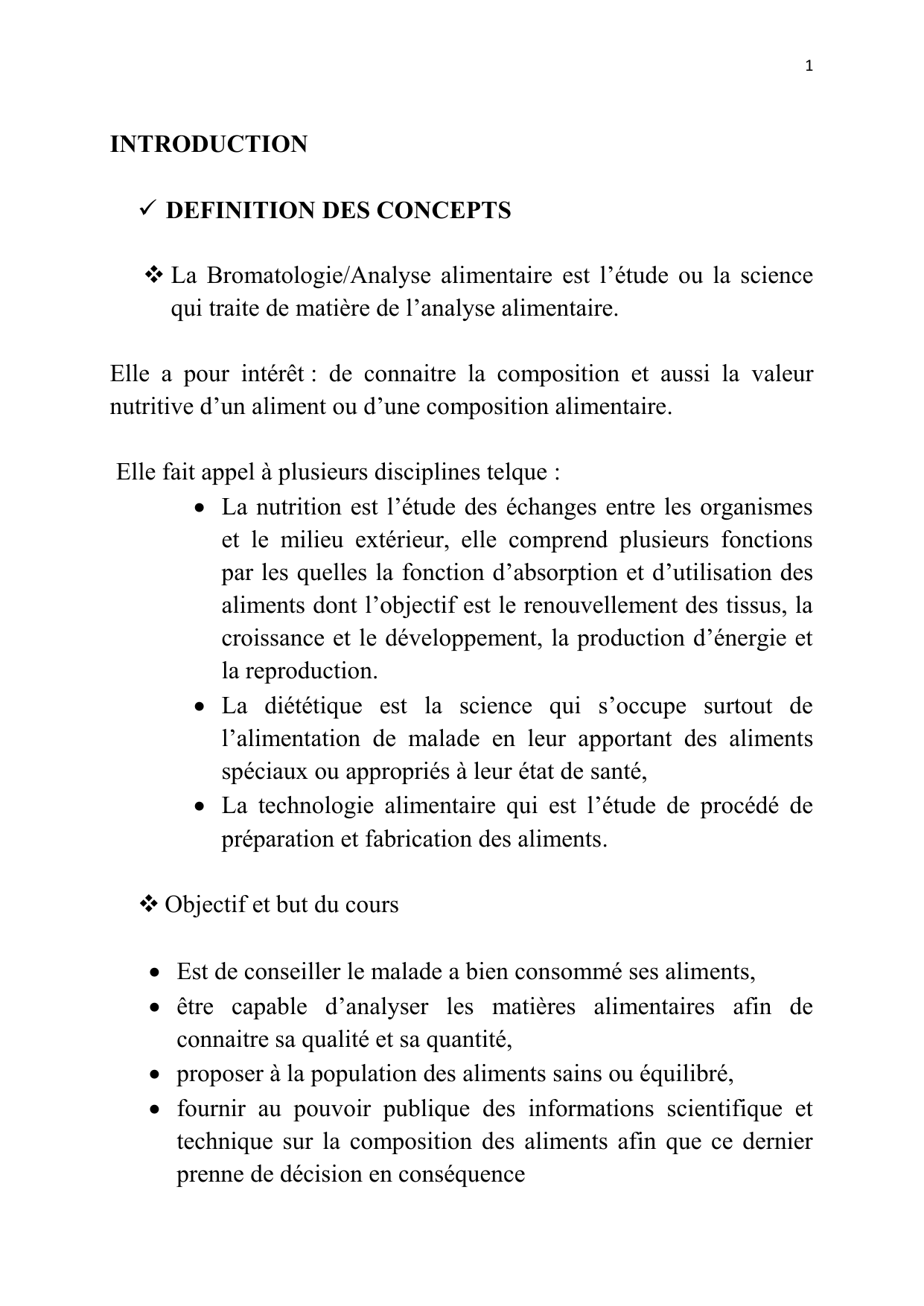 Le cours de la bromatologie/ analyse alimentaire comprend trois