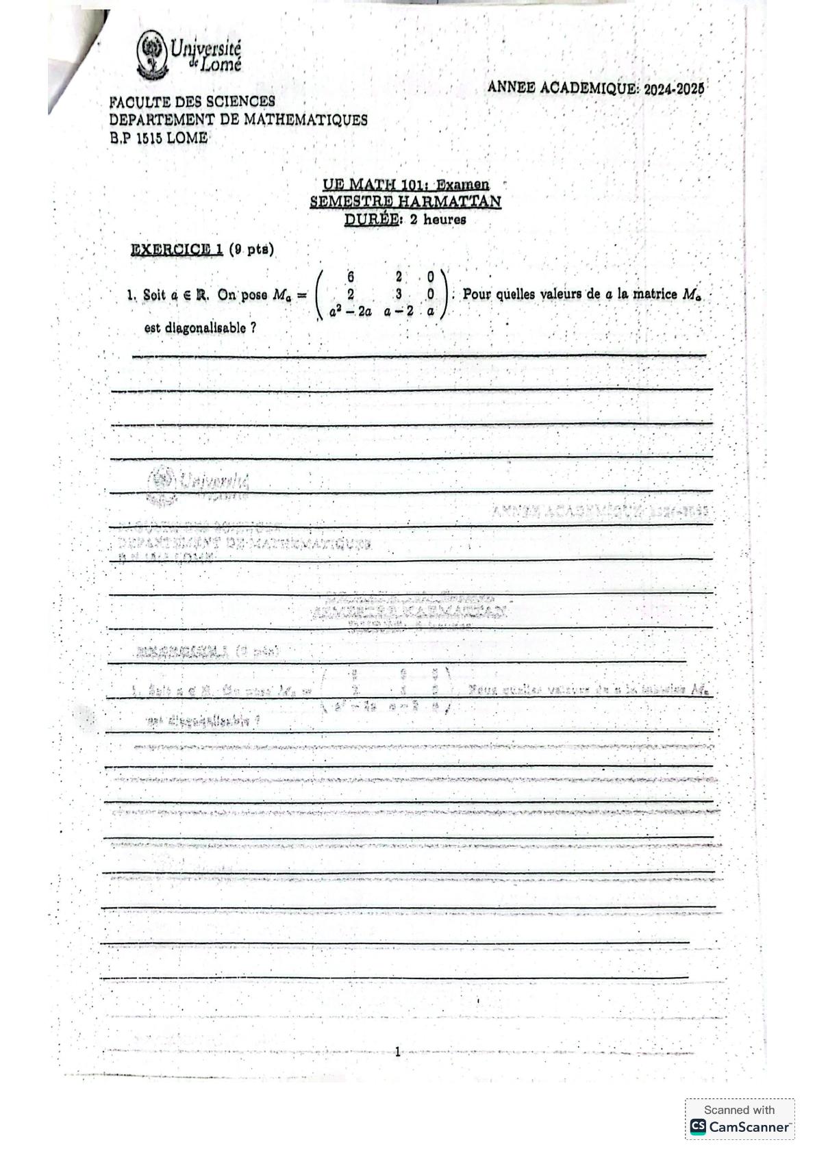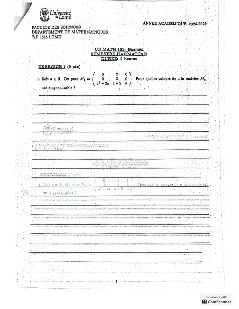 UE MATH 101 Exam: Matrix Diagonalizability Question