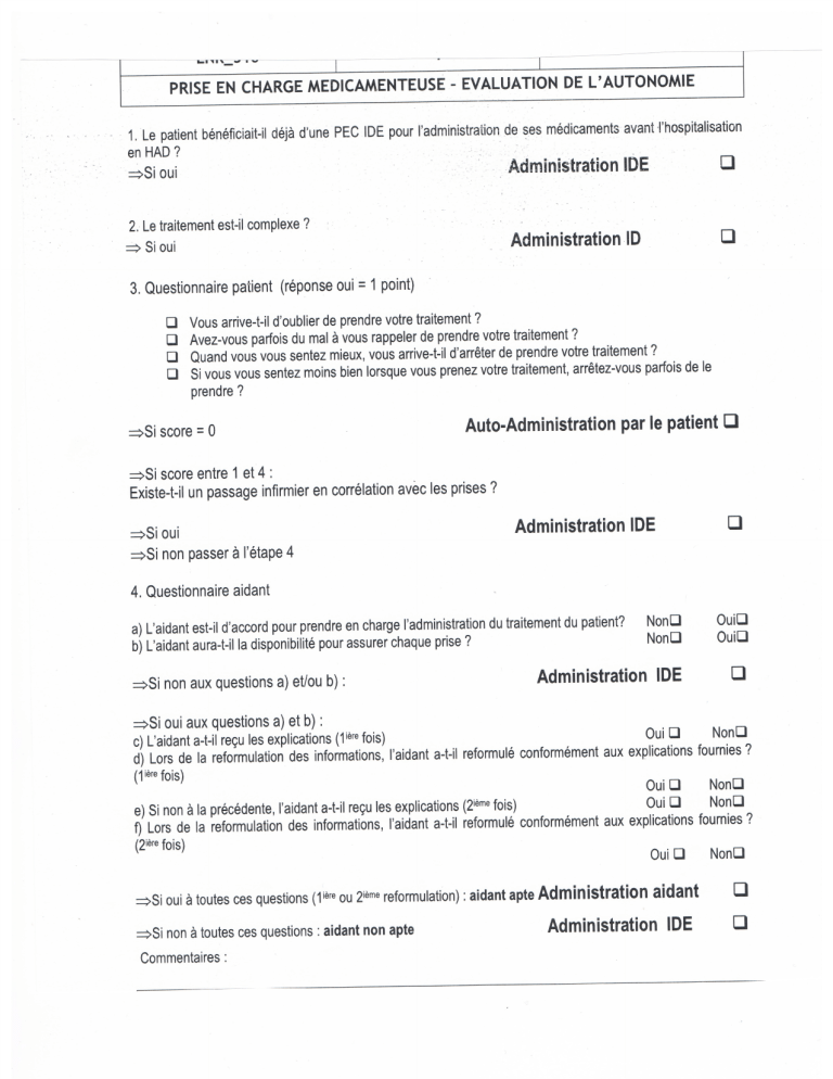 Evaluation autonomie du patient