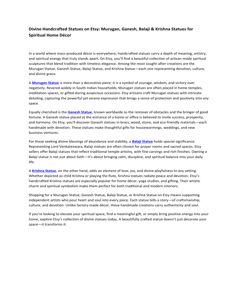 Shopping for a Murugan Statue, Ganesh Statue, Balaji Statue, or Krishna Statue on Etsy means supporting