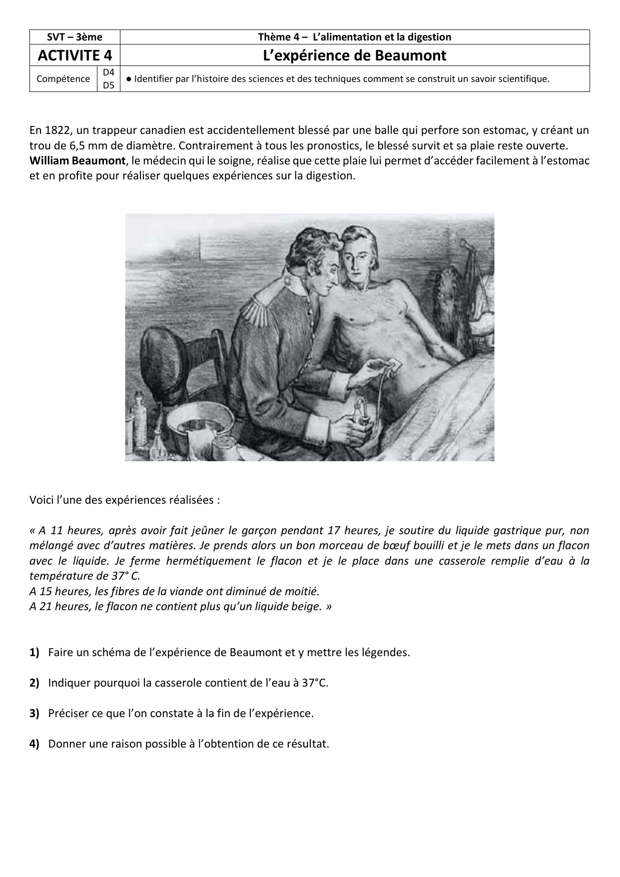 William Beaumont, le médecin qui le soigne, réalise que cette plaie lui permet d’accéder facilement à l’estomac
