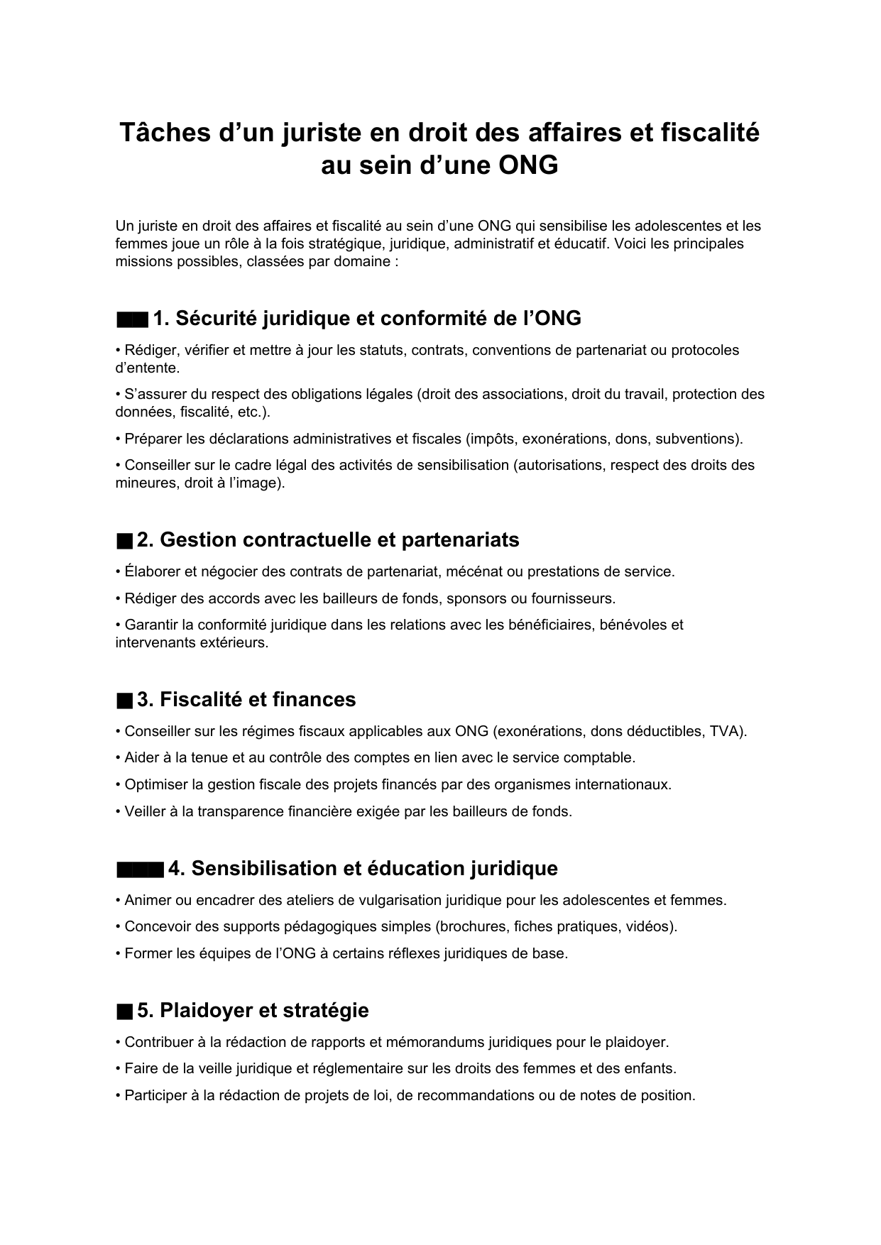 • Conseiller sur les régimes fiscaux applicables aux ONG (exonérations, dons déductibles, TVA).