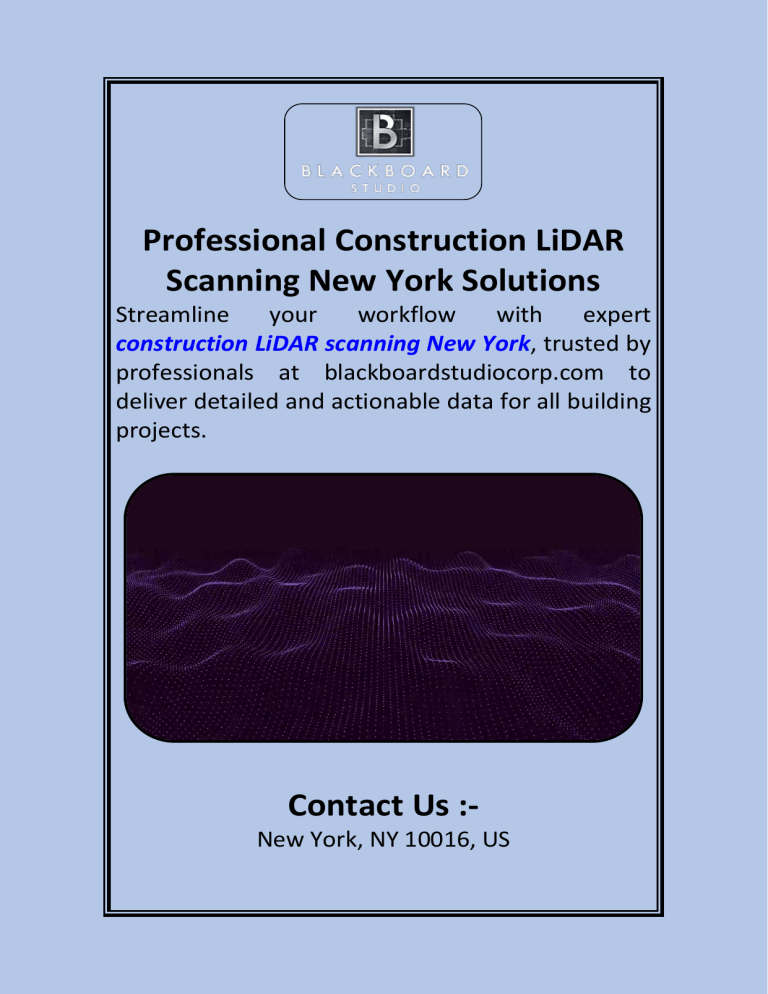 Professional Construction LiDAR Scanning New York Solutions