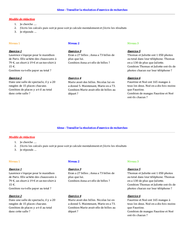 2. J’écris les calculs puis soit je pose soit je calcule mentalement et j’écris les résultats