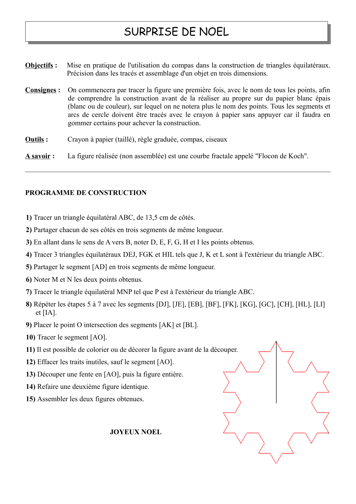 A savoir : La figure réalisée (non assemblée) est une courbe fractale appelé "Flocon de Koch".