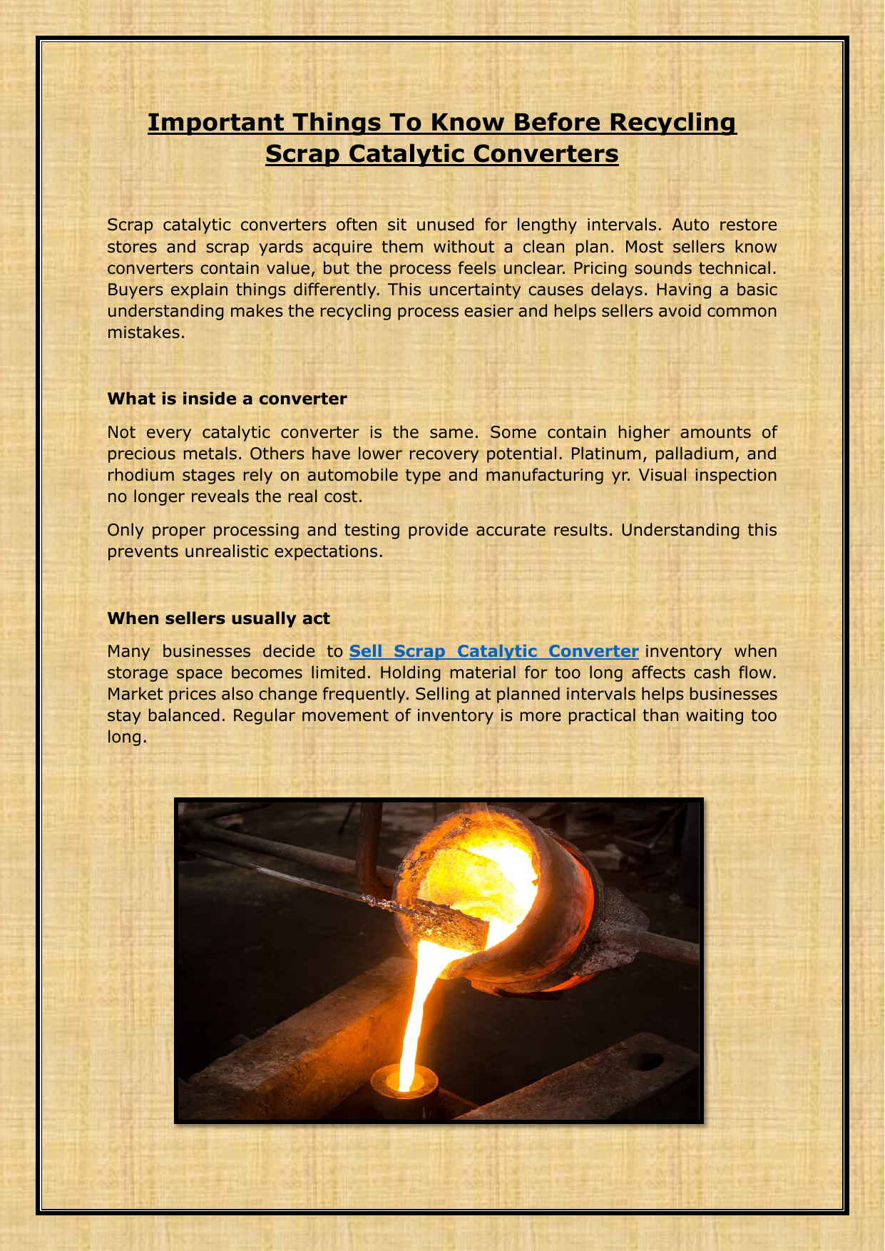 stores and scrap yards acquire them without a clean plan. Most sellers know