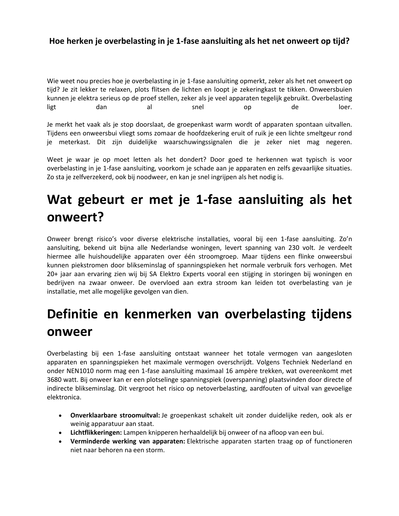 Wie weet nou precies hoe je overbelasting in je 1-fase aansluiting opmerkt, zeker als het net onweert op