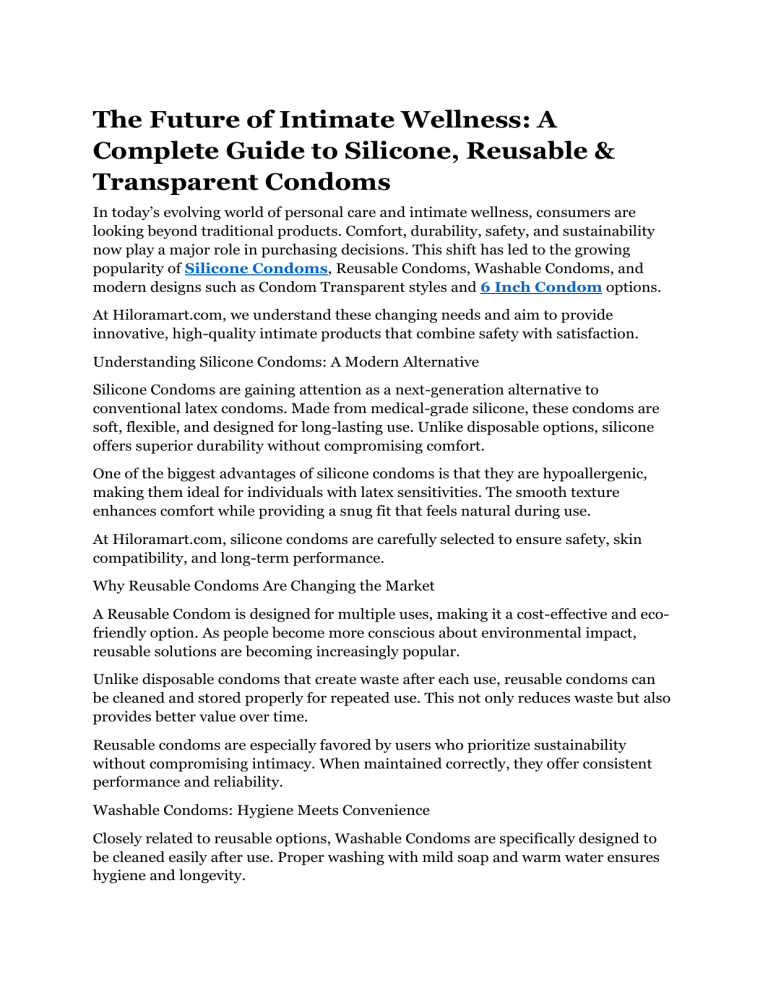 Silicone Condoms are gaining attention as a next-generation alternative to