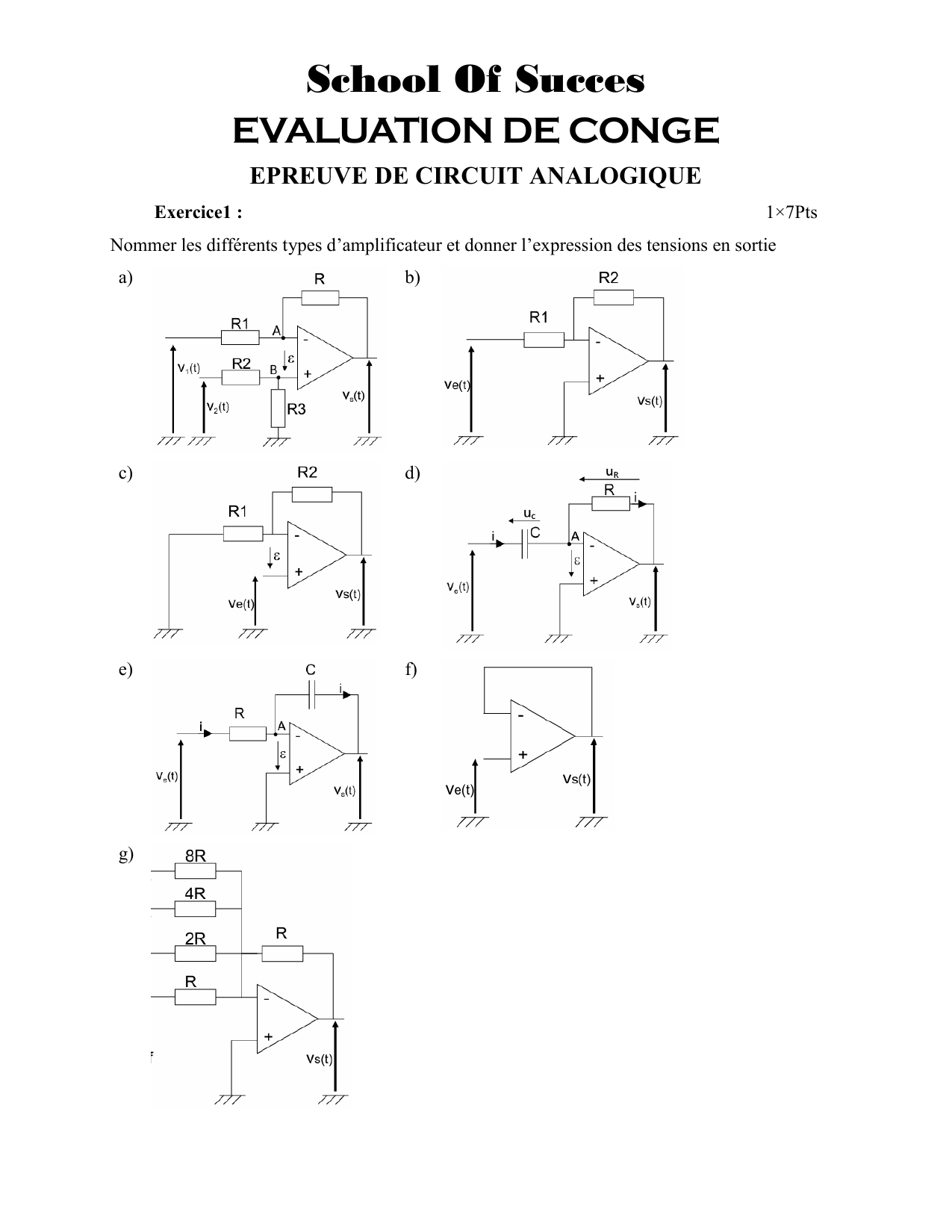 EPREUVE DE CIRCUIT ANALOGIQUE
