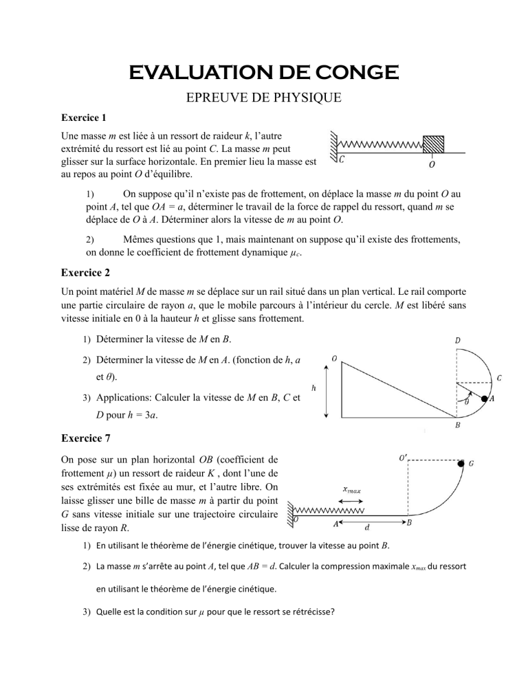 2) La masse m s’arrête au point A, tel que AB = d. Calculer la compression maximale xmax du ressort