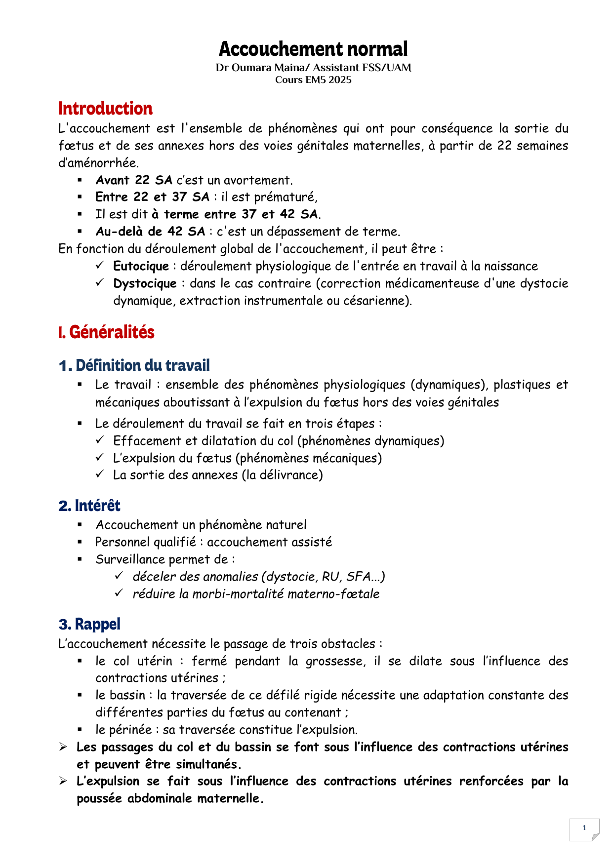 ✓ Dystocique : dans le cas contraire (correction médicamenteuse d'une dystocie