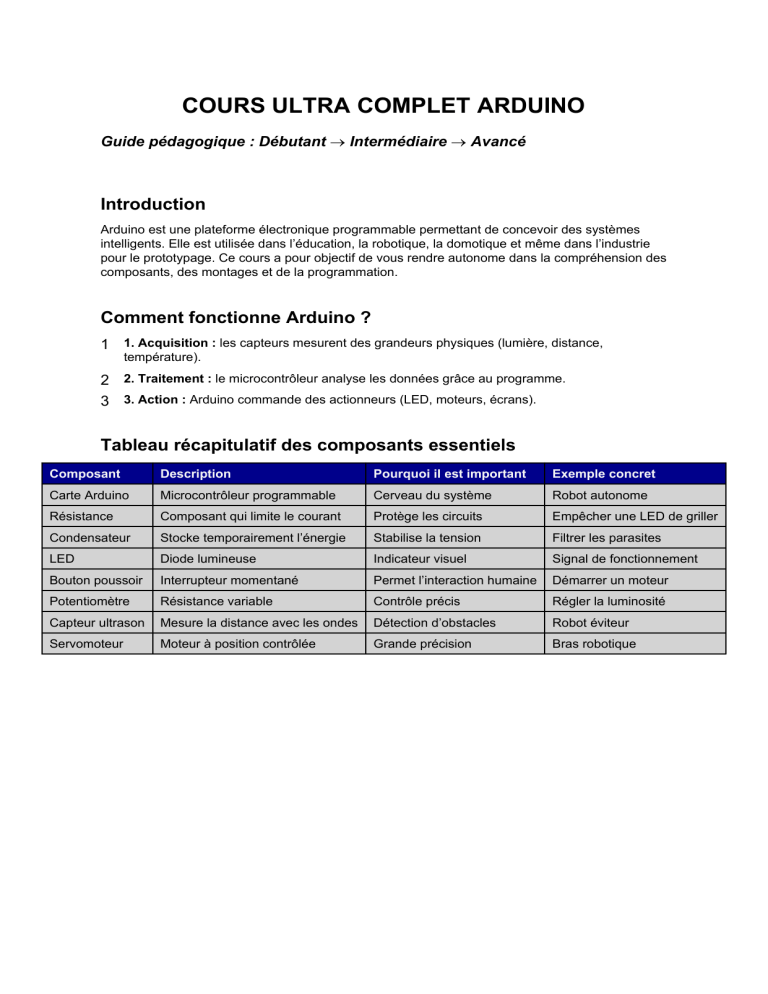 pour le prototypage. Ce cours a pour objectif de vous rendre autonome dans la compréhension des