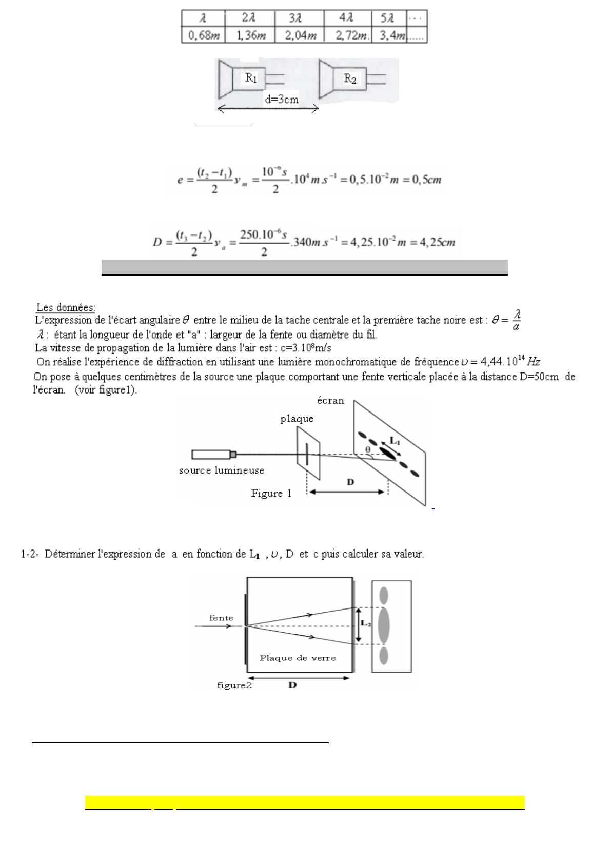 a) Donner une explication à cette observation. graduée pour que l'alignement de la règle d) Calculer la distance minimale avec laquelle on doit éloigner R2 de R1 selon les deux signaux deviennent de nouveau en phase. (On donne la vitesse de propagation des ondes ultrasonores dans l'air est va=340m/s. ) 2) Utilisation des ondes ultrasonores pour mesurer les dimensions d'un tube métallique: Une sonde jouant le rôle d'émetteur et de récepteur envoie une impulsion ultrasonore de faible durée en direction