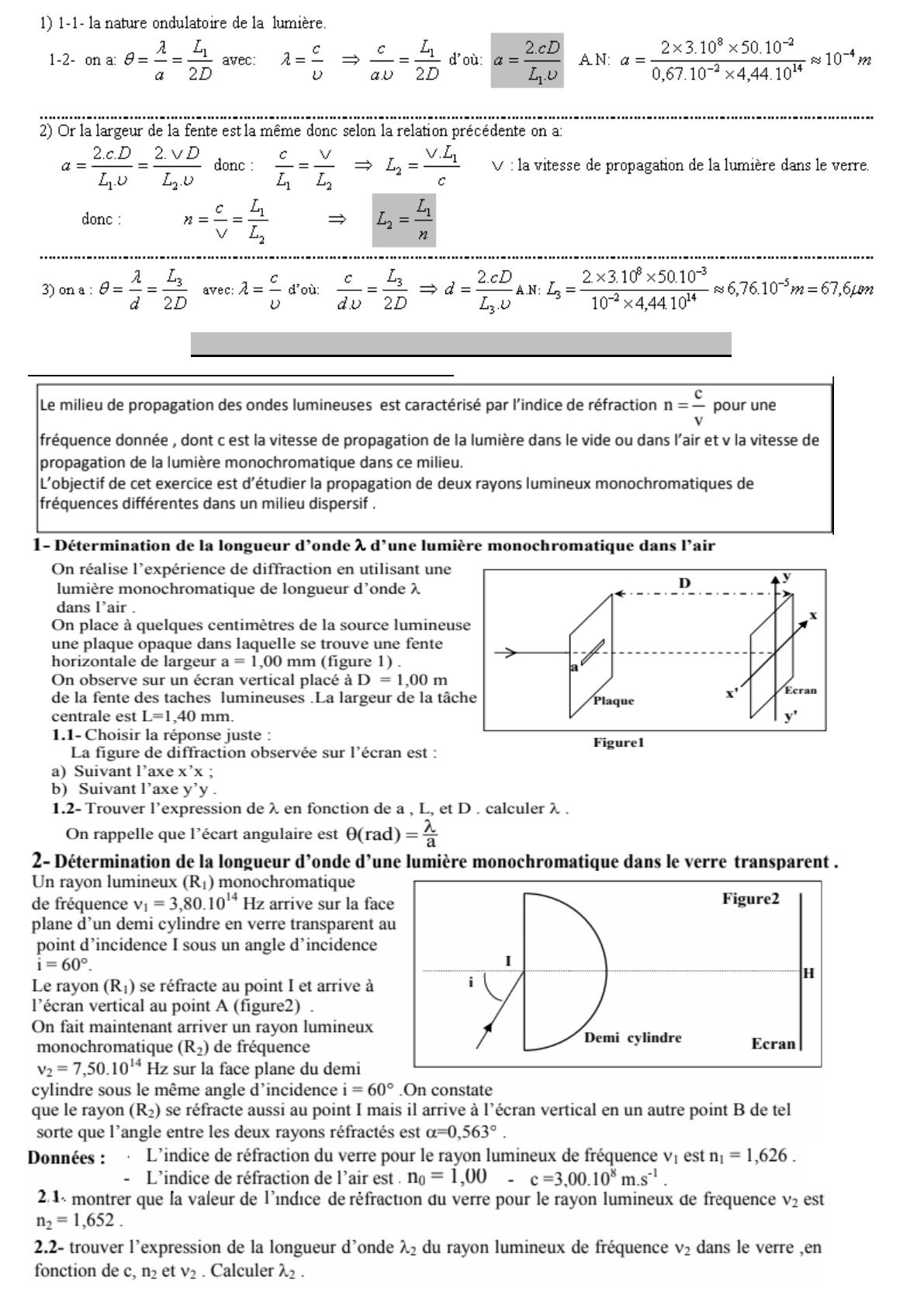 1) 1-1- a) Une onde progressive est une série d'ébranlements identiques résultant d'une vibration entretenue de la source des ondes.