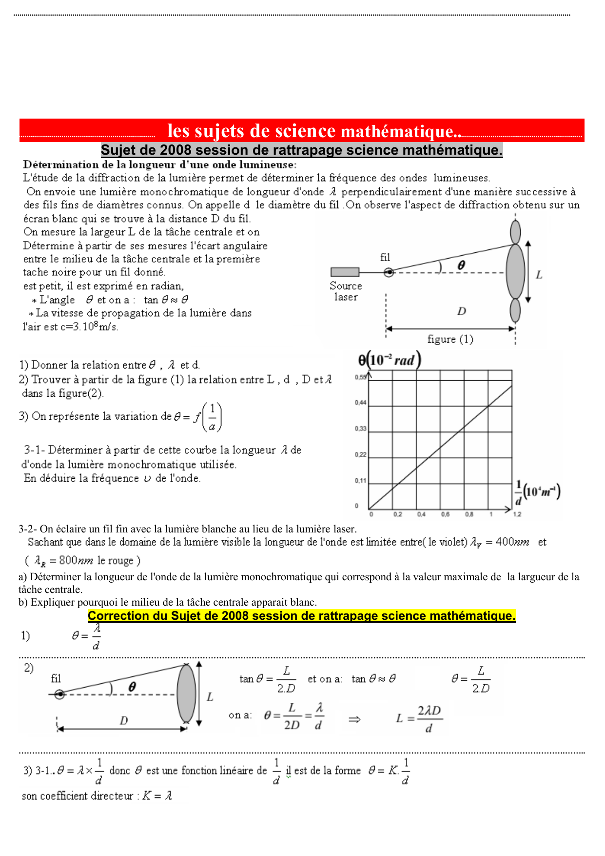 2-1- Déterminer l'épaisseur e de la paroi du tube métallique. 2-2- déterminer le diamètre intérieur D du tube. Correction du Sujet de 2009 session de normale science mathématique.