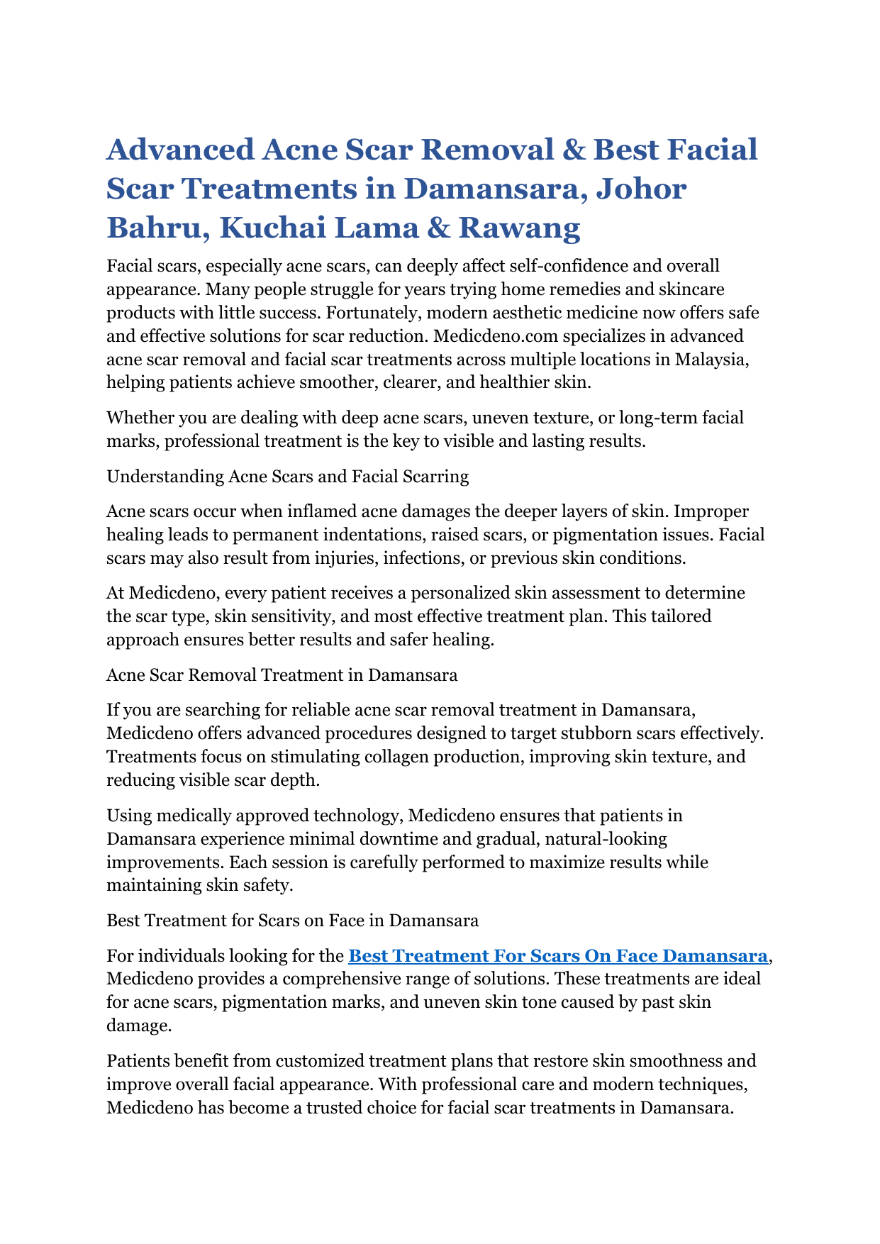 Medicdeno has become a trusted choice for facial scar treatments in Damansara.