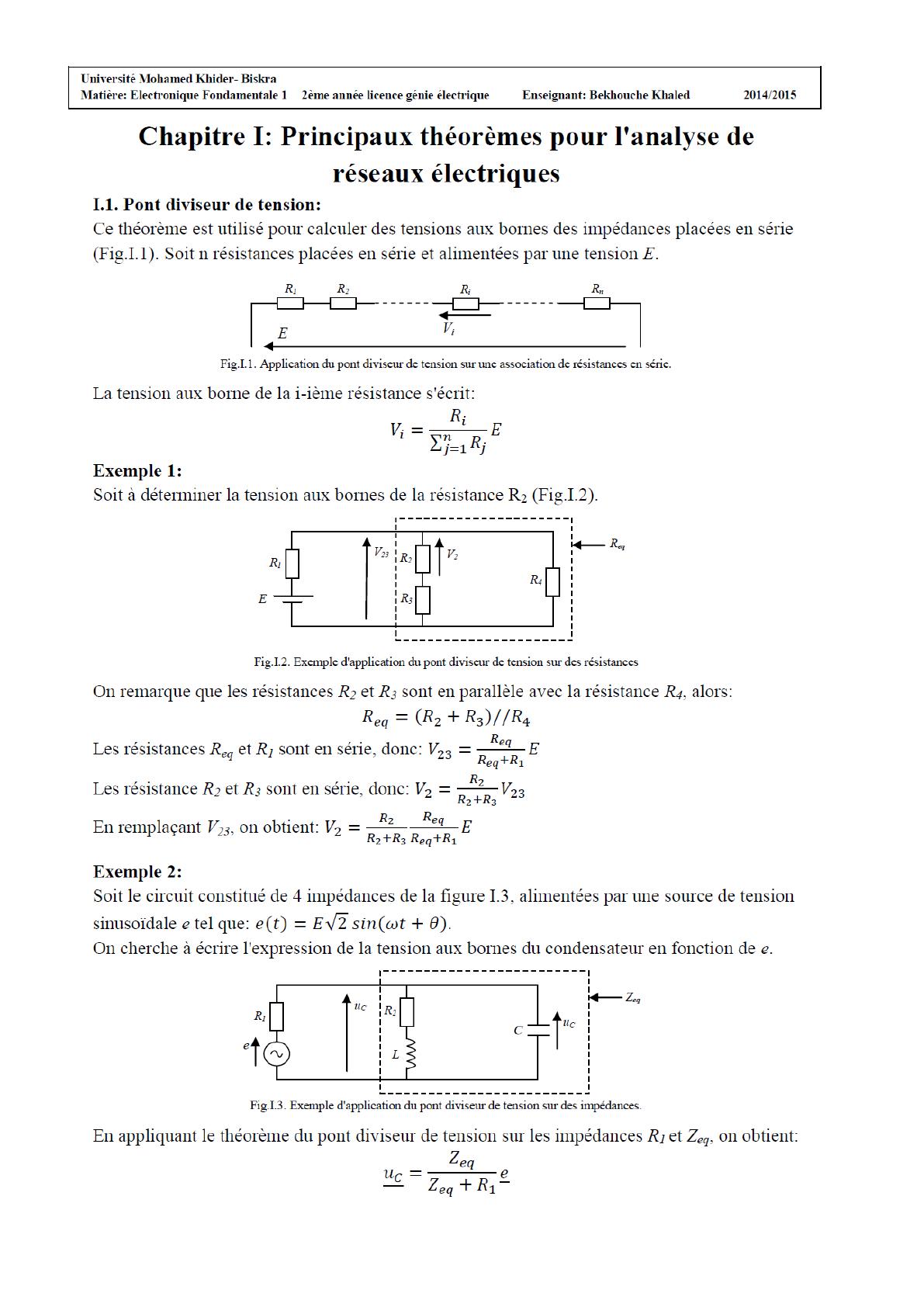 Chapitre I: Principaux théorèmes pour l'analyse de réseaux électriques