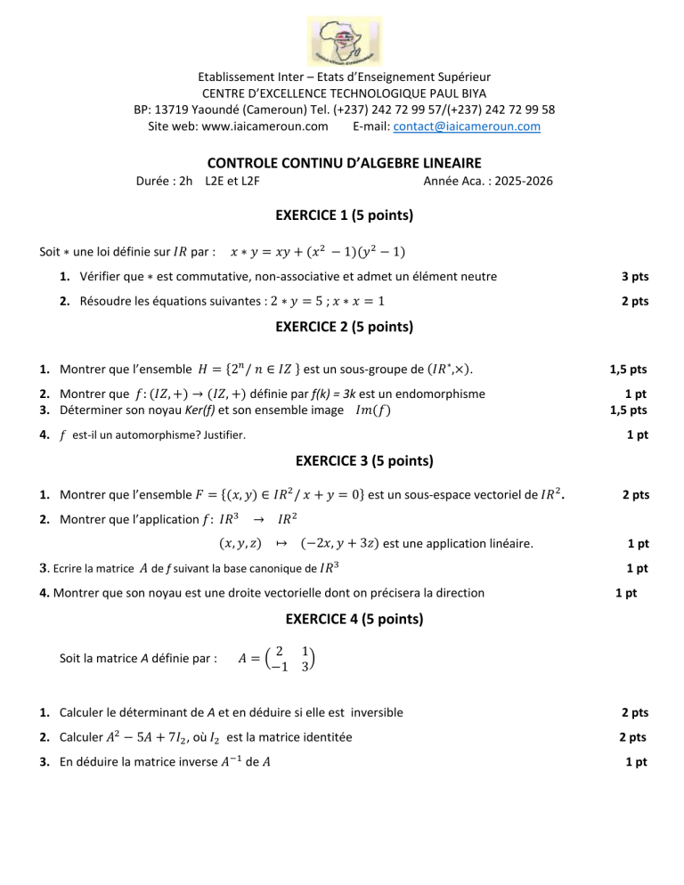 1. Montrer que l’ensemble est un sous-groupe de . 1,5 pts