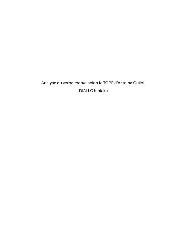 Analyse du verbe rendre selon la TOPE d’Antoine Culioli