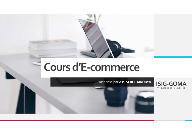 Cours d’E-commerce Dispensé par Ass. SERGE KIKOBYA ISIG-GOMA http://ebook.isig.ac.cd Objectifs: Acquérir les notions de base liées à la pratique des affaires sur Internet. Saisir l'importance des affaires électroniques et leur implication dans le monde des affaires d'aujourd'hui Comprendre les avantages potentiels du commerce électronique par rapport aux approches commerciales classiques Comprendre le fonctionnement du commerce sur Internet et identifier les différentes possibilités d'affaires sur Internet. Comprendre les bases du marketing et de la publicité sur Internet S’appréhender des avantages & désavantages du commerce électronique Objectifs du cours Commerce Electronique en L2-IG&RTEL 2018 - 2019 TREY ISIG-Goma Re s e a r c h 2 PLAN DU COURS • Chap.0. Généralités & définitions • Chap.1. Introduction au Commerce Electronique • Chap.2. Les enjeux d’E-commerce • Chap.3. Composants site web d’E-commerce • Chap.4. Paiement Electronique • Chap.5. Passerelle de paiement • Chap.6. Pratique site web d’E-commerce (Scratch ou CMS) TREY ISIG-Goma Re s e a r c h 3 Commerce: Echanges de biens et services d’un producteur vers un consommateur moyennant un paiement Introduction: Actuellement toutes les entreprises créée leurs propres sites web pour proposer ses produits & services aux clients distants E-commerce: Généralement connu comme le marketing électronique, consiste à acheter et vendre des biens et services via un système électronique tel que l'Internet L'e-commerce est l'achat, la vente et l'échange de biens et services sur un réseau informatique à travers lequel les transactions ou termes de vente sont effectués électroniquement Cyber consommateur: est un client qui utilise l'Internet pour acheter un produit ou service La boutique électronique: a les éléments de base sur frontoffice qui comprend : - un catalogue électronique; - un moteur de recherche pour faciliter la recherche; - le paiement sécurisé par un tiers; - un système panier; - un système de suivi des commandes; I. Généralités TREY ISIG-Goma Re s e a r c h 4 E-commerce VS E-business E-commerce: permet de vendre et acheter des biens & services sur Internet; E-business: est une notion très large par rapport à Ecommerce (achat, vente, fidélisation clientèle, service après vente, Newsletter, etc.) et utilise tout les supports de NTIC Le processus E-commerce 1. Un consommateur utilise un navigateur Web pour se connecter à la home page d'un site marchant sur Internet 2. Le consommateur parcours le catalogue des produits disponibles sur le site et en sélectionne certains à acheter. Les produits sélectionnés sont placés dans l'équivalent électronique d'un panier 3. Quand le consommateur est prêt à valider sa commande de produits, il passe au CHECKOUT et donne une adresse de facturation et de livraison 4. Quand le numéro de carte de crédit est validé par le système de payement (banque) et que la commande est vérifiée sur le serveur du marchand, on lui affiche/envoi un reçu/mail confirmant son achat 5. Et reste en attente de livraison TREY ISIG-Goma Re s e a r c h 5 CATEGORIE D’E-COMMERCE 1 . Entreprise à Entreprise (B-to-B), e-Commerce entre 2 organisations 2. Entreprise à Consommateur (B-to-C), échange entre entreprise et consommateur 3. Gouvernement à Citadin (G-to-C), ensemble des services que le gouvernement fait payer les citadins en ligne (VISA, Taxes, etc.) Les formes du E-commerce - B2B: est l'e-commerce entre compagnies, cela représente environ 80% de l'e-Commerce EXEMPLE: Intel vendant des processeurs à Dell - B2G: Business-to-government: e-commerce entre des compagnies et le secteur publique/gouvernementale Exemple: Paiement de taxes, remise de dossiers, ou vente de biens et services aux agences gouvernementales - B2C: Business-to-consumer: e-commerce entre compagnies et consommateurs Exemple: Dell me vendant un ordinateur portable TREY ISIG-Goma Re s e a r c h 7 Les formes du E-commerce - C2C: Consumer-to-consumer, e-commerce entre personnes privées ou consommateurs Ex: - Kakule achetant un iPod à Kambale sur eBay - Moi vendant mon livre sur amazon - G2B: Government-to-business; est un modèle d'ecommerce référant au gouvernement qui fournit des services et informations aux entreprises Ex: site web du gouvernement supportent des fonctionnalités d'enchères, de tendances et de réponse à des appels d'offre - G2C: Government-to-Citizen; c'est e-Governance: fournir des biens et services efficaces à tous les citoyens: - Informations sur tous les départements du gouvernement; - Différents schémas d'aide sociale; Différents formulaires devant être utilisés par les citoyens TREY ISIG-Goma Re s e a r c h 8 Avantages de l'e-commerce 1. Les avantages du E-commerce pour l'Entreprise: • Procédure rapide d'achat/vente, moyen facile de trouver des produits; - Gagner des nouveaux parts de marché: car la disponibilité du site web 24h/24 et 7j/7; Vendre les produits direct: sans recours aux intermédiaire Faible coûts Offrir aux clients le meilleur expérience utilisateur • Achats et ventes 24h/24 et 7jours/7 - • Atteinte d'un plus grand nombre de consommateurs, il n'y a pas de limite géographique (en théorie) 2. Les avantages d'E-commerce pour le client: • Bas coût opérationnel et meilleure qualité de service • Pas besoin de points de vente physiques • Entreprise facile à démarrer et à gérer • Les clients peuvent facilement choisir des produits de différents fournisseurs sans se déplacer physiquement Désavantages de l'E-commerce • Incapacité d'examiner personnellement les produits • Tout le monde n'est pas (encore) connecté à l'Internet • Possibilité de vol de numéros de carte de crédit • Des pannes mécaniques peuvent causer des effets imprédictible sur le processus global. - Permet la recherche de meilleur prix - Gagner de temps; - Offre actualisée; - Possibilité d'acheter 24h/24, 7j/7