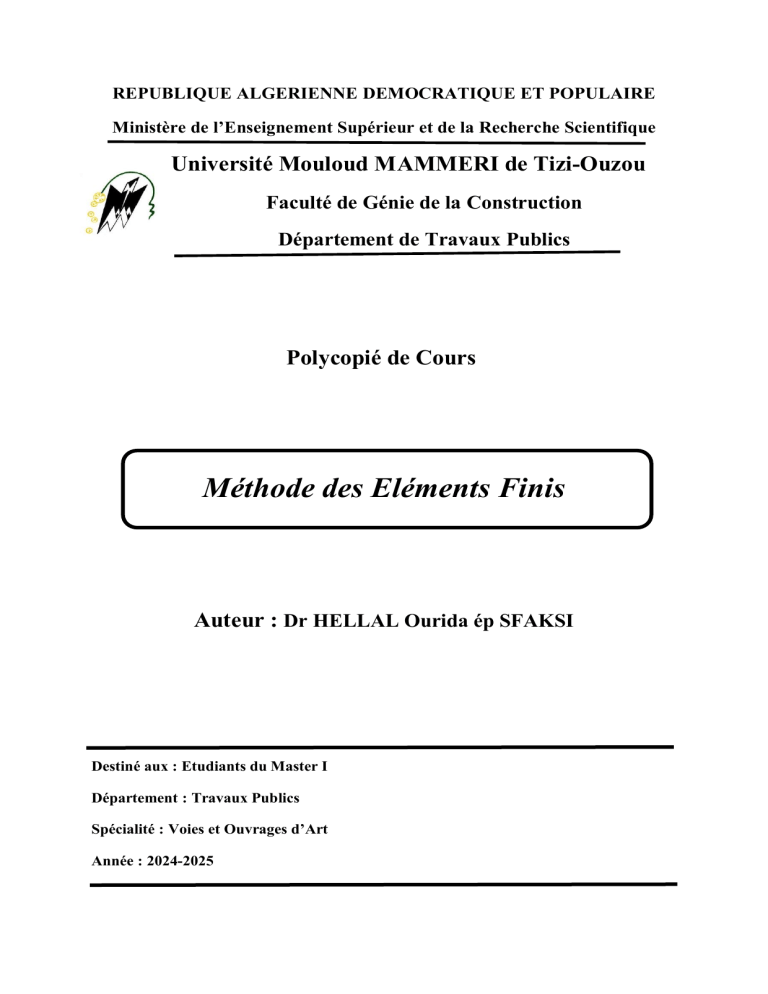 [19] Seghir, A. (2014), “Cours Méthode des Eléments Finis”, (Polycopié de cours, Université