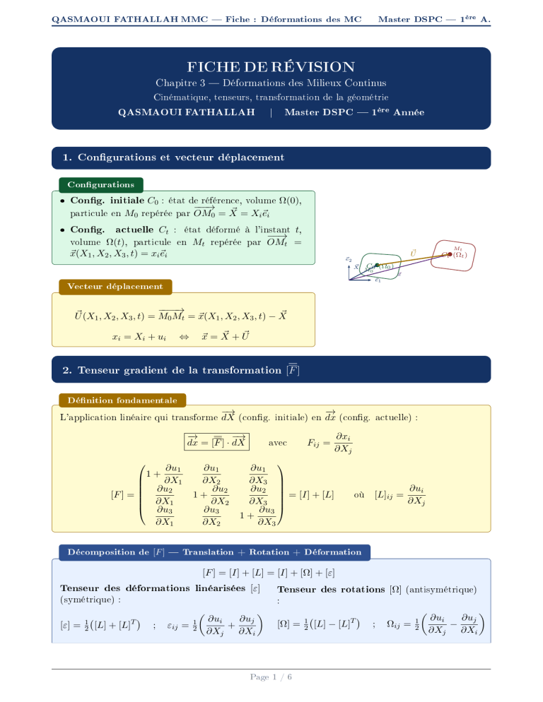 QASMAOUI FATHALLAH MMC Fiche : Déformations des MC Master DSPC 1 A.