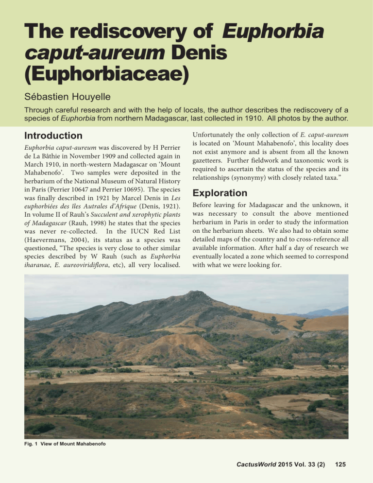 species of Euphorbia from northern Madagascar, last collected in 1910. All photos by the author.