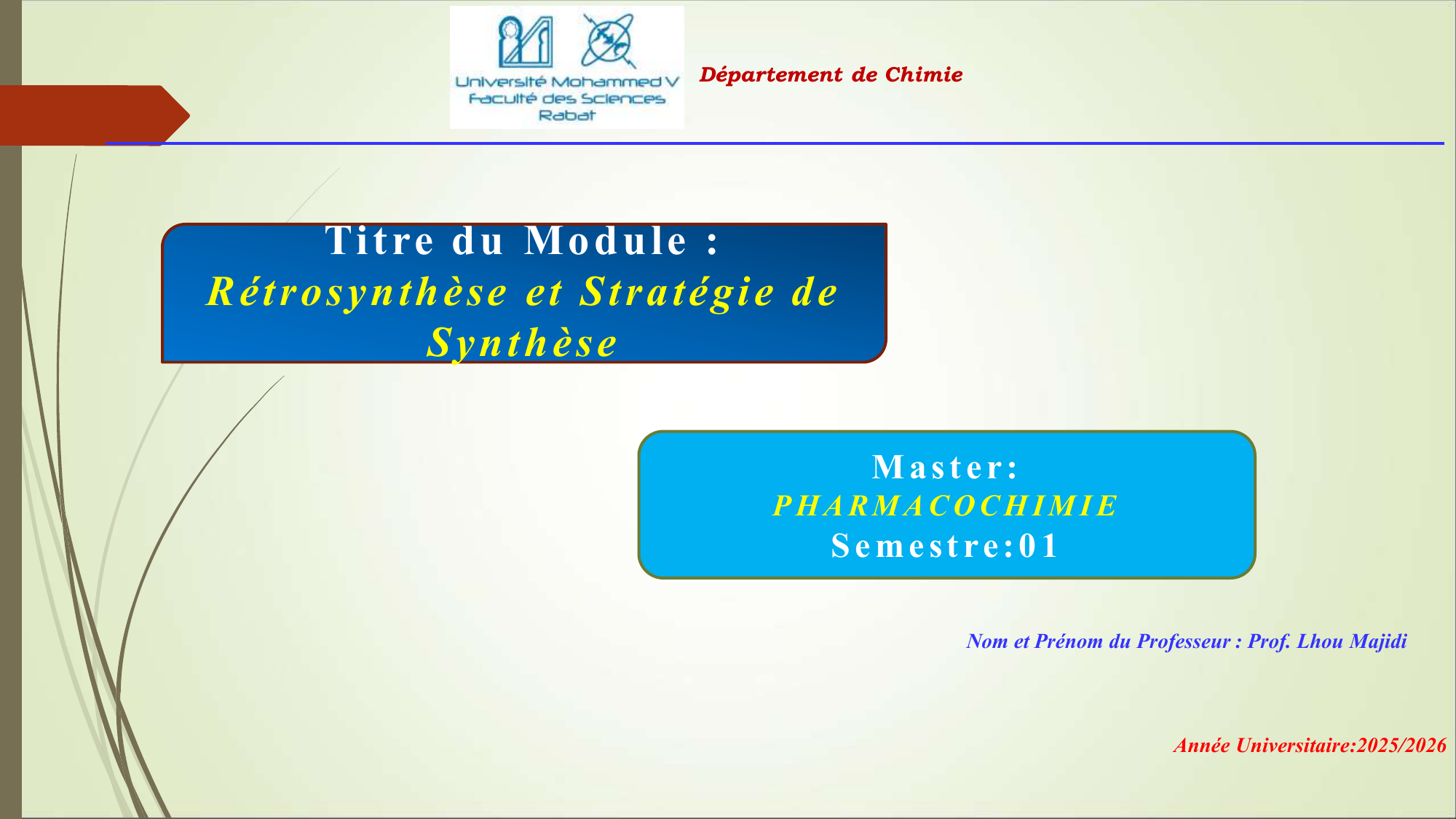 Rétrosynthèse et Stratégie de Synthèse - Module de Pharmacochimie