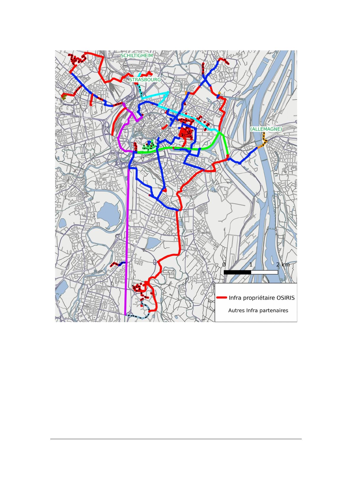 réseau de génie civil : rues traversées, positions des chambres de tirage.