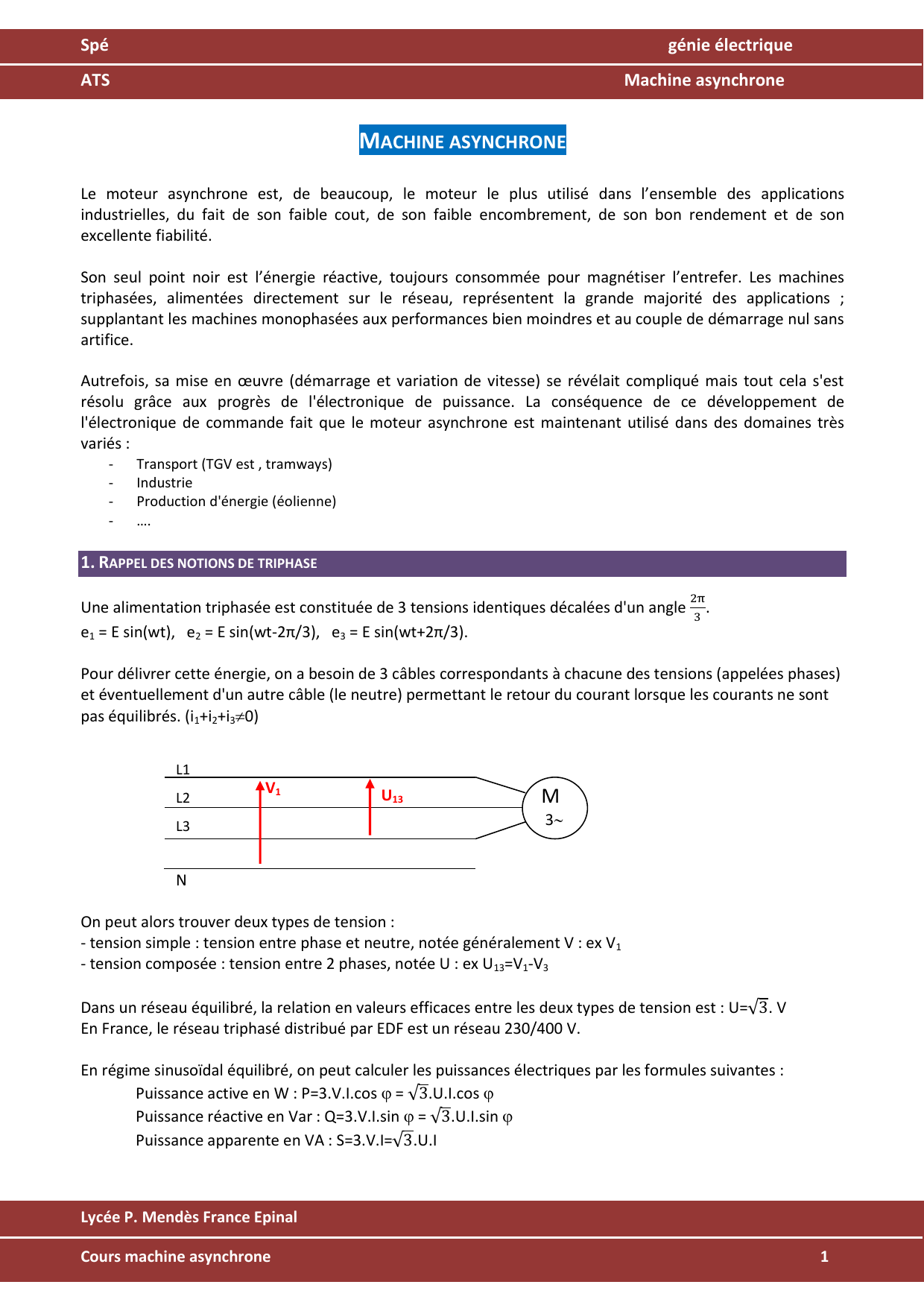 1. RAPPEL DES NOTIONS DE TRIPHASE