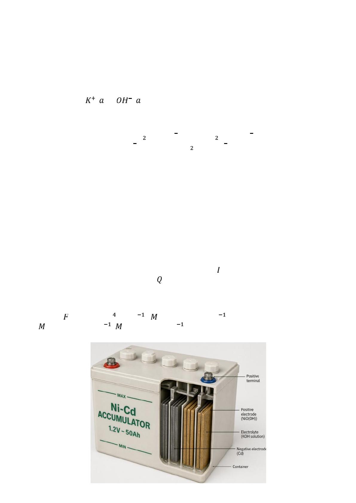 b) Write the overall operating (discharge) reaction of a nickel–cadmium battery.