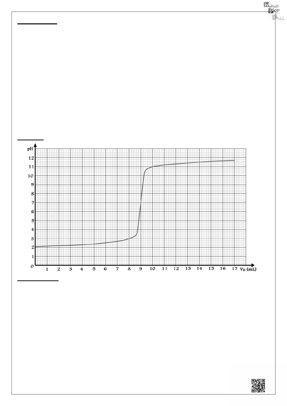 3) A 10mL d’une solution de pH=9, on ajoute 20ml d’eau pure. Calculer le pH de la solution obtenue