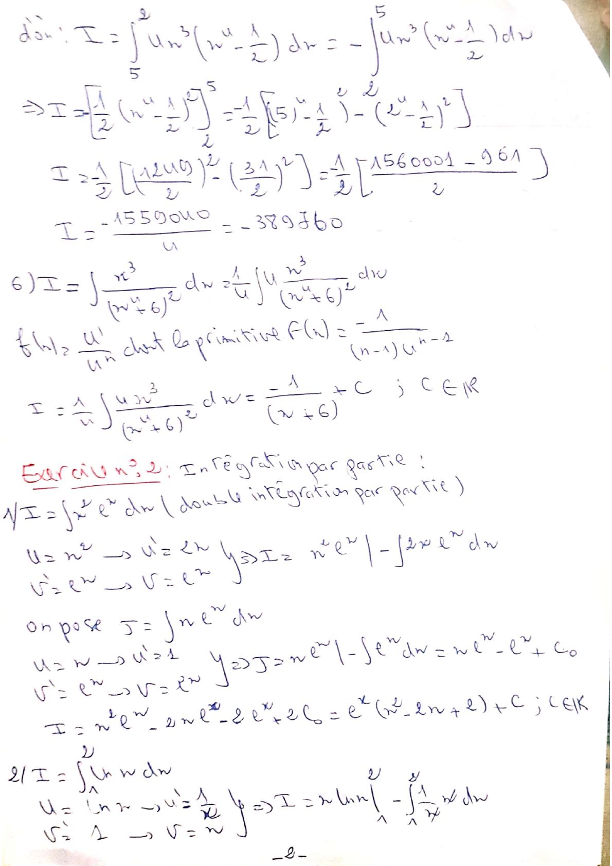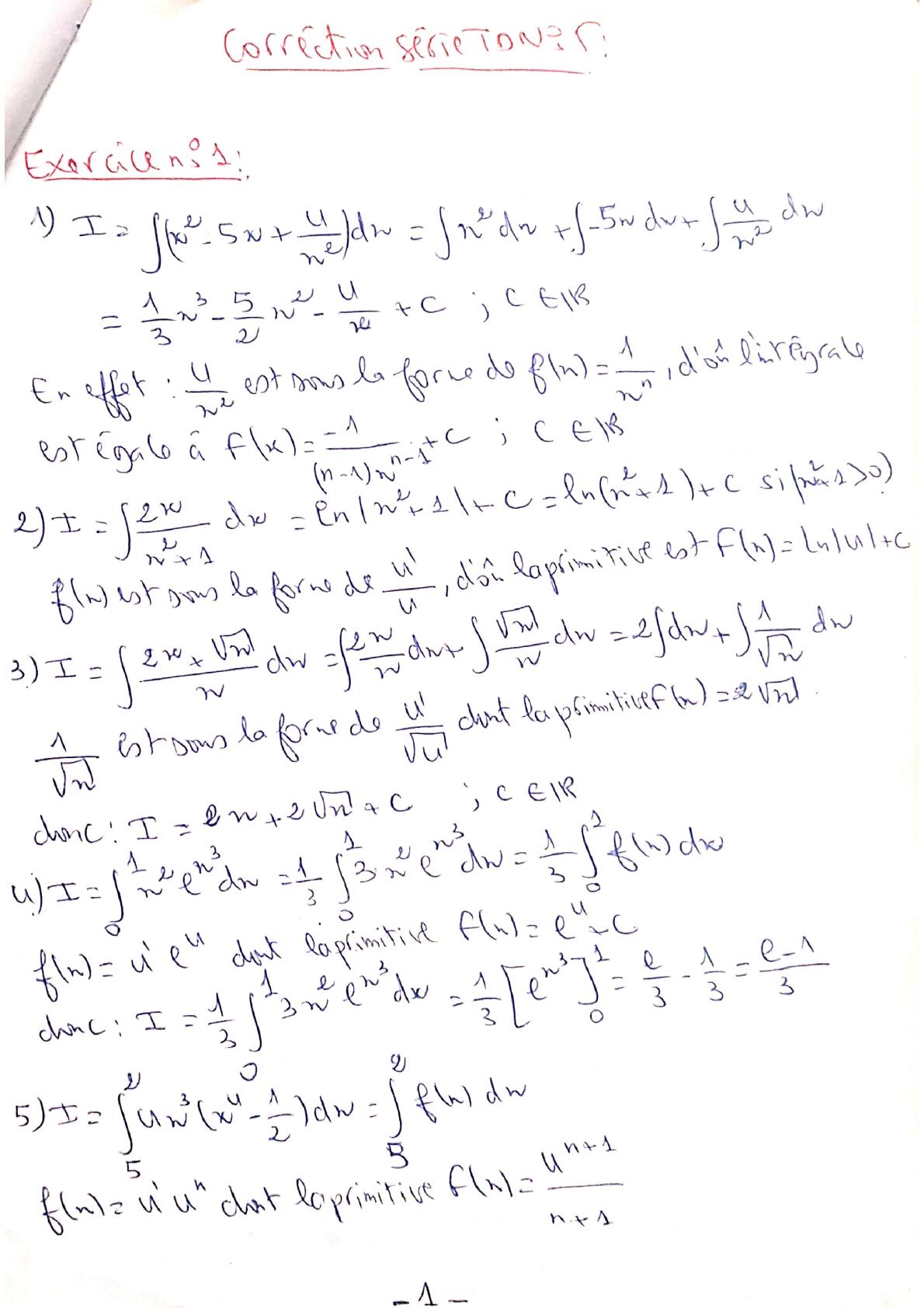 Exercice 1. Calculer les primitives et intégrales suivantes :