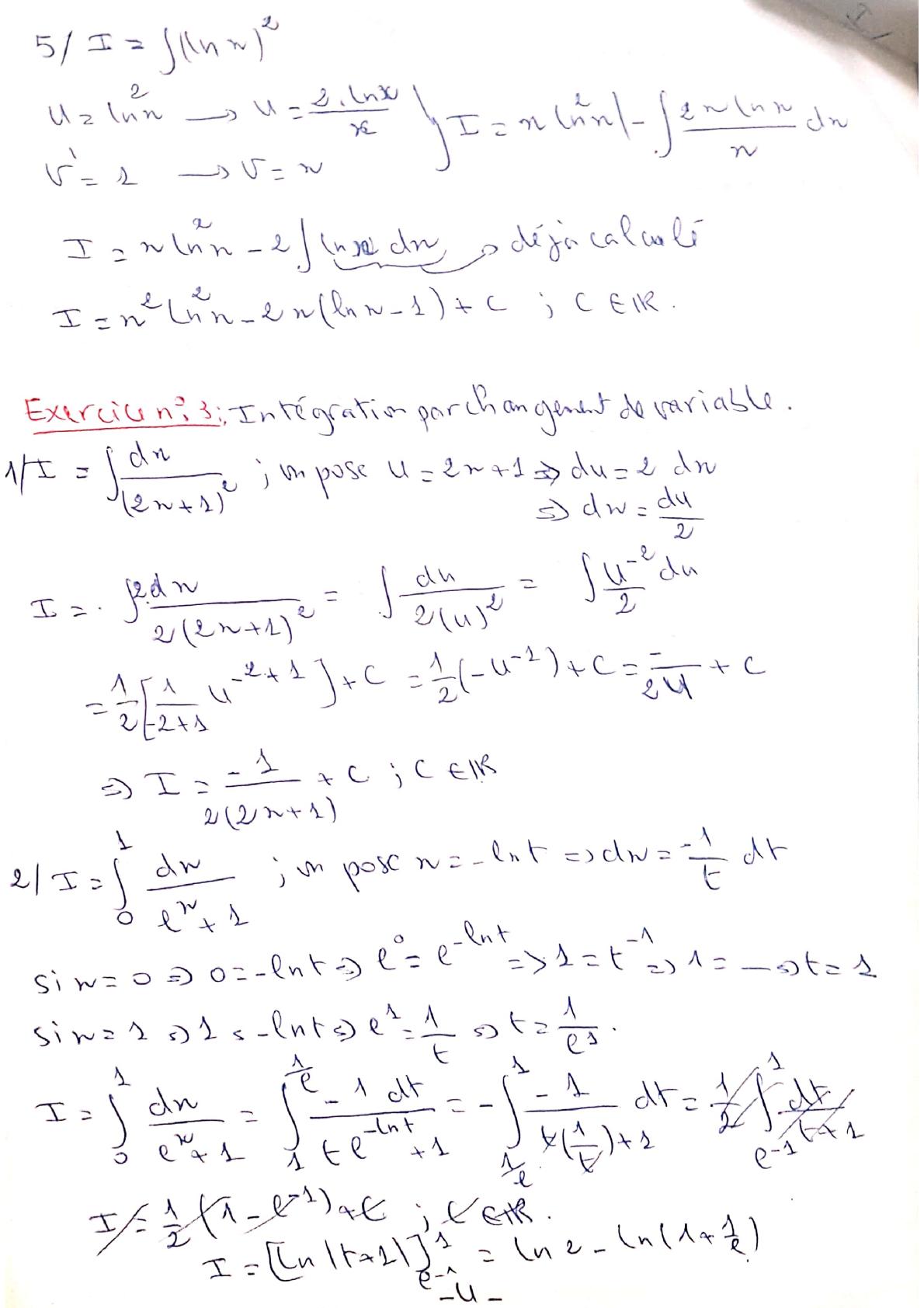 Exercice 3. A l’aide d’un changement de variable calculer :