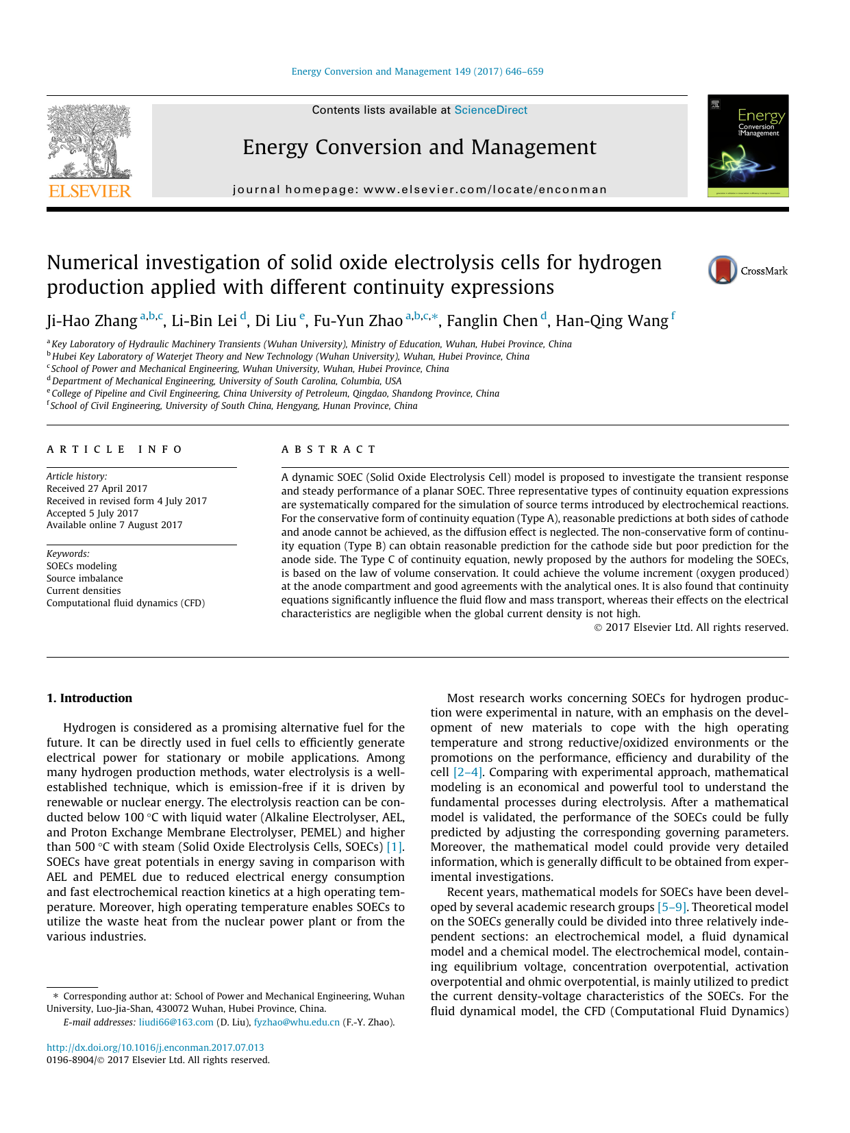 form of continuity equation for modeling SOFC [24–27] and PEMFC