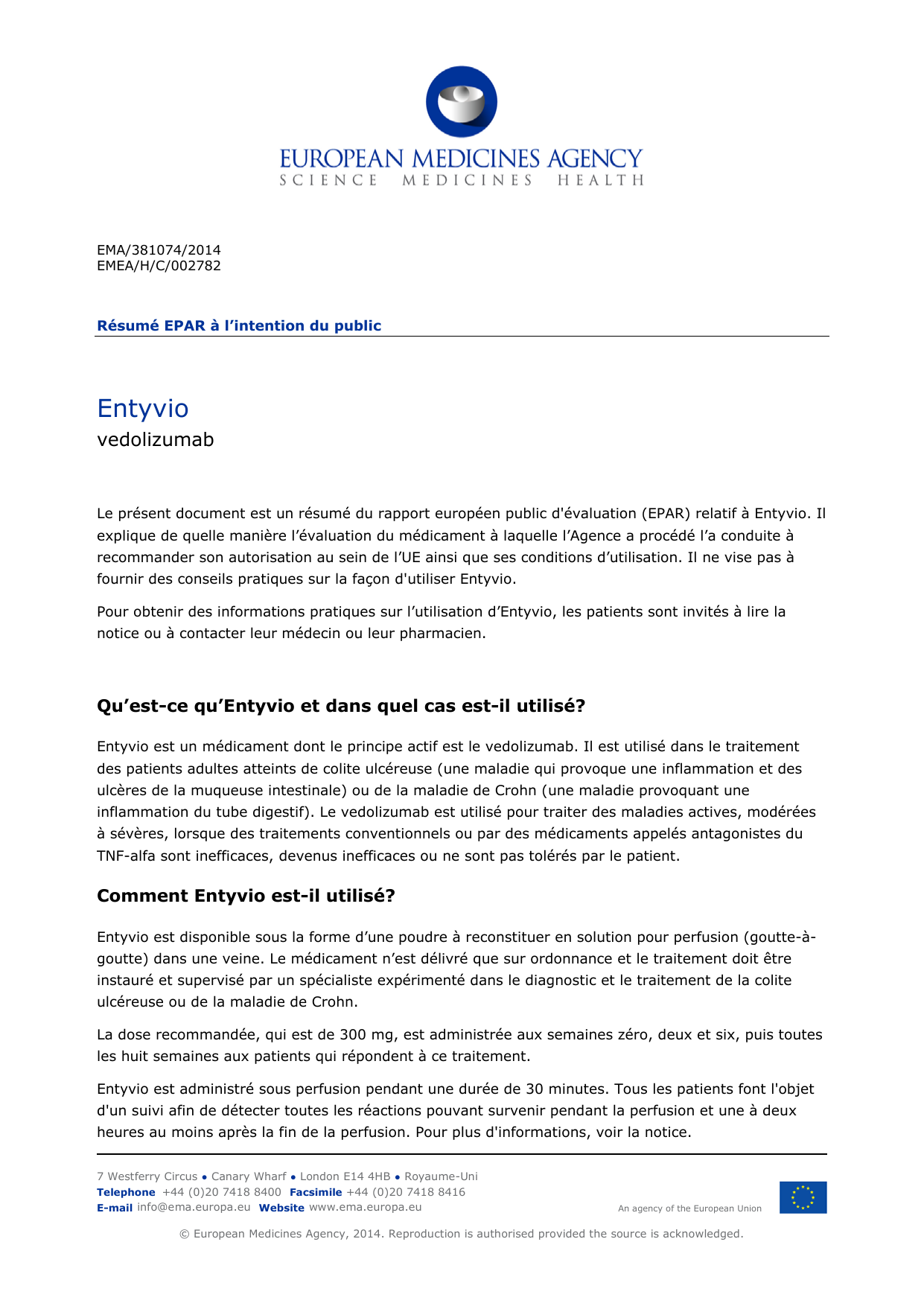 Entyvio est élaboré selon une méthode appelée «technique de l'ADN recombinant»; il est fabriqué à