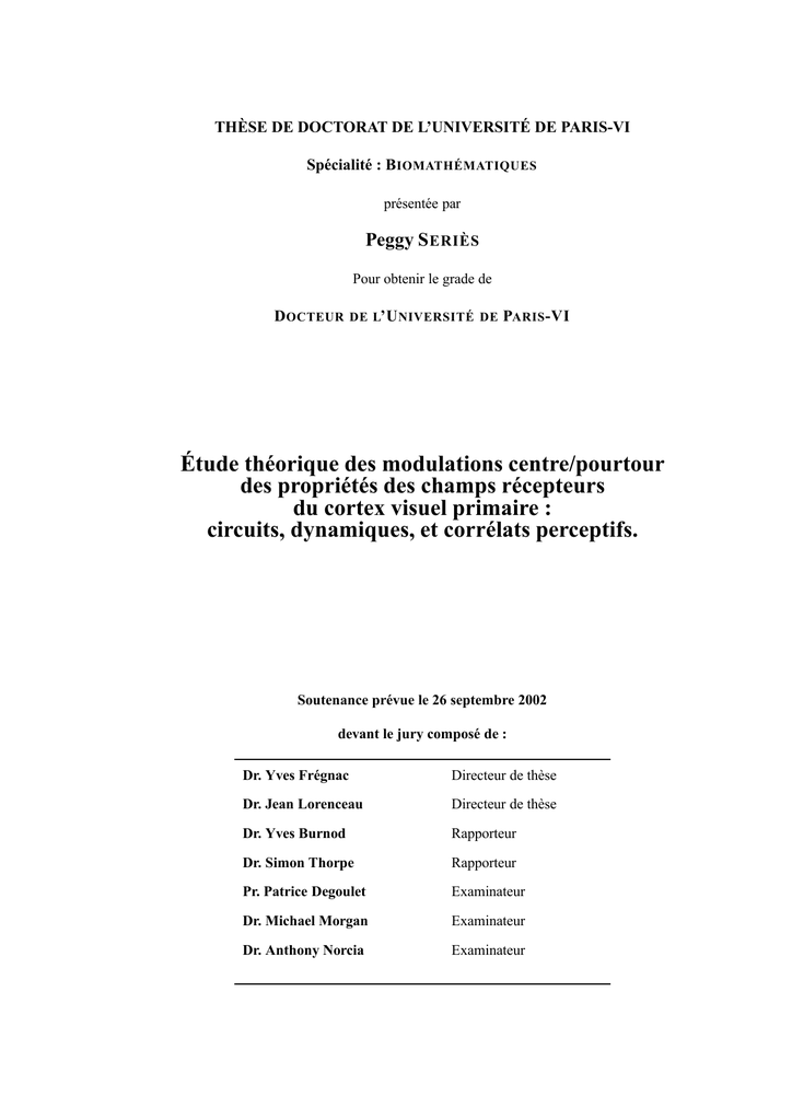 plus générale, nos résultats théoriques, ainsi que les études psychophysiques et électrophy-