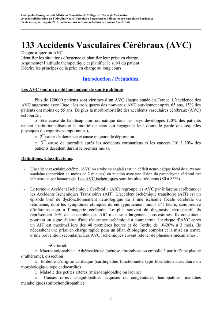 distinction entre AVC hémorragique et AVC ischémique. Elle amorce les diagnostics étiologique et