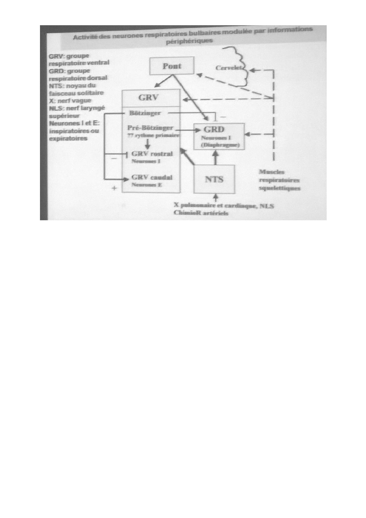Il y a donc 3 étages. Le plus important étant les neurones respiratoires propriobulbaires qui sont le siège de