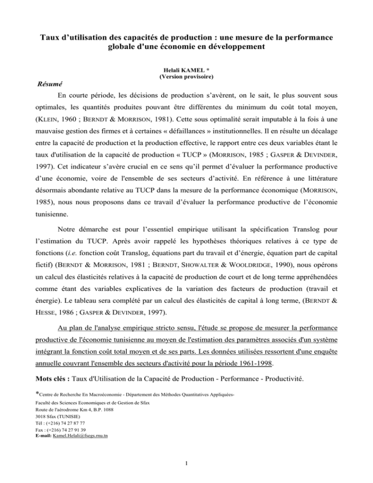 TUCP est défini comme le rapport de la production observée à la capacité de production. Cette