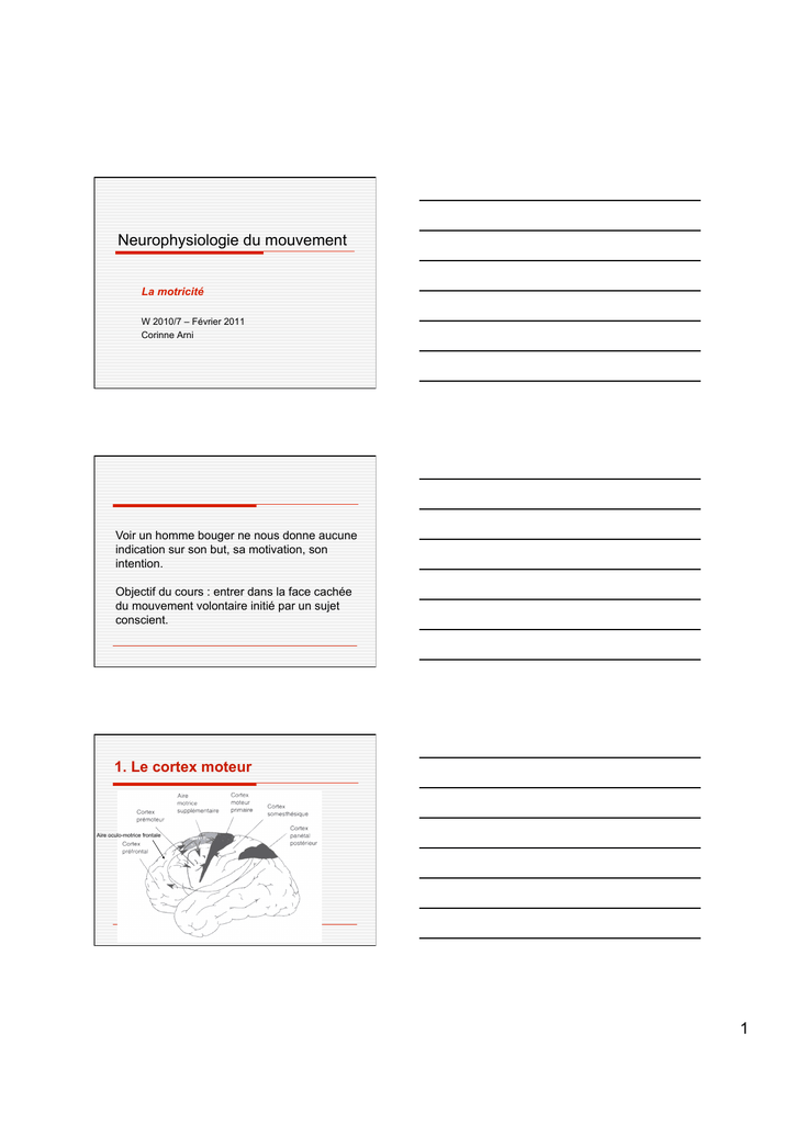 Le cortex moteur (suite)