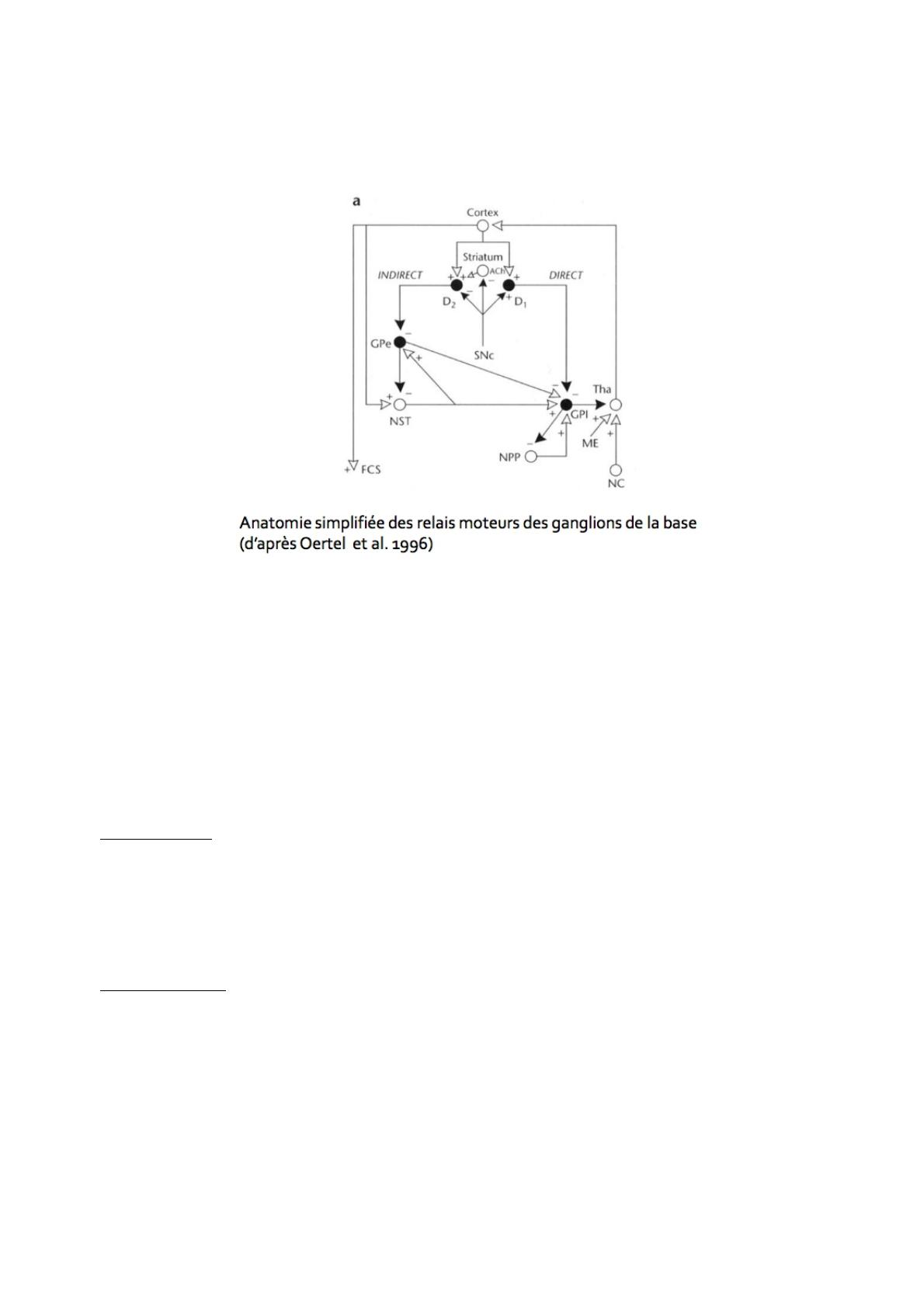 provoque l'inhibition du cortex moteur. (cette voie va diminuer l'inhibition sur le noyau subthalamique qui va
