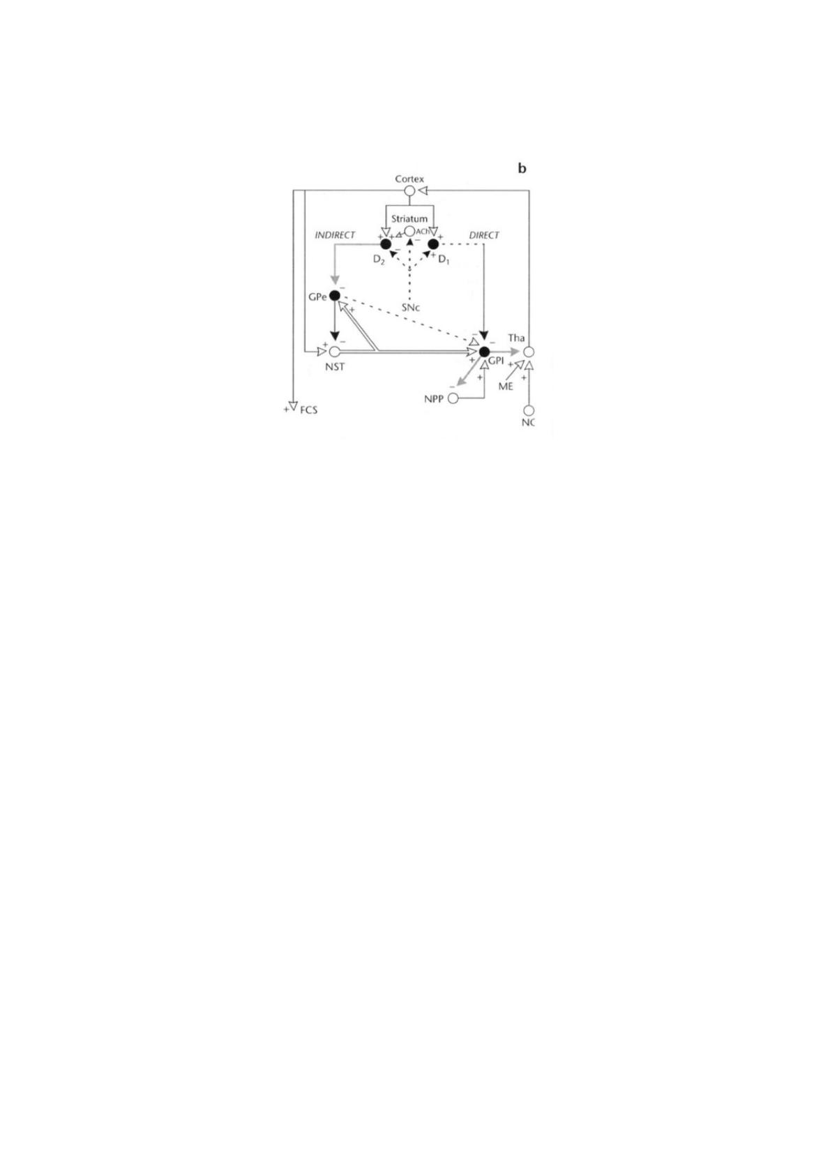 En partant du locus niger, cette voie va être inhibitrice au niveau du pallidum interne. Cependant le pallidum