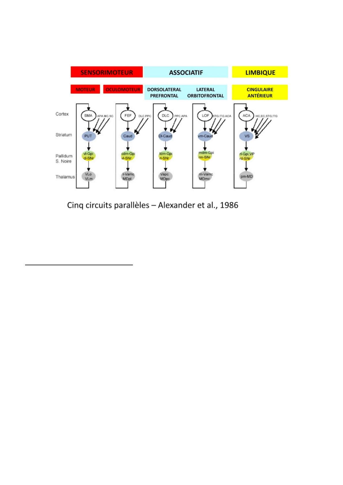 Les fibres partant du locus niger provoque l'inhibition du pallidum externe et ce noyau inhibe le noyau