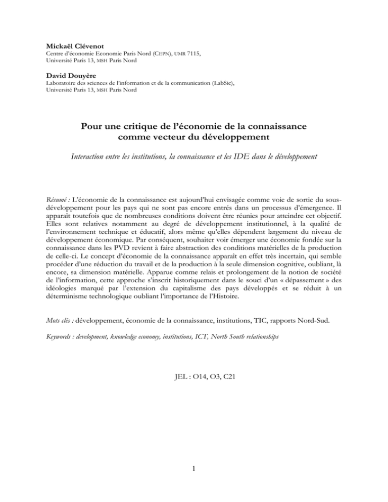 montre leur faiblesse. Aussi le thème de l’économie de la connaissance comme vecteur du développement